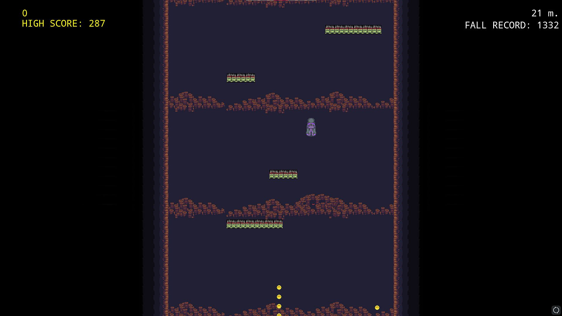 You've defeated the dragon, so now it's time to gather the spoils! Unfortunately for you, the dungeon floor gives out beneath your feet, revealing a bottomless (?) cavern. Now there's nothing to do but fall and dodge, so you might as well get rich while you do it.