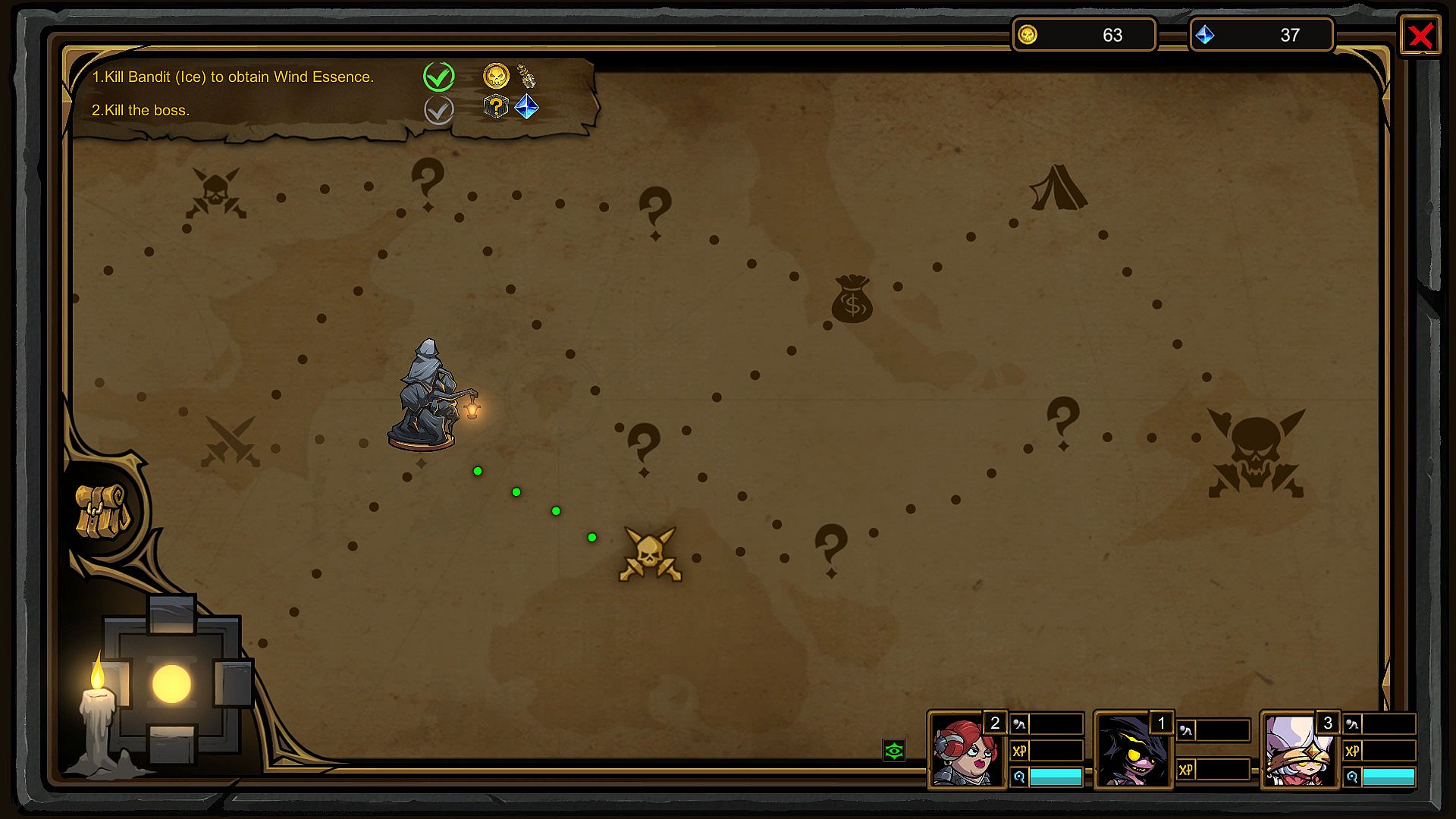 During expeditions, characters enter 'rooms' containing random events, battles, resting areas, shops, etc. Room locations and routes are all randomly generated in each expedition, so each one provides something new. Which room you'll travel to is decided by the roll of the dice, while you actively decide which way to go when you reach a fork in the road.