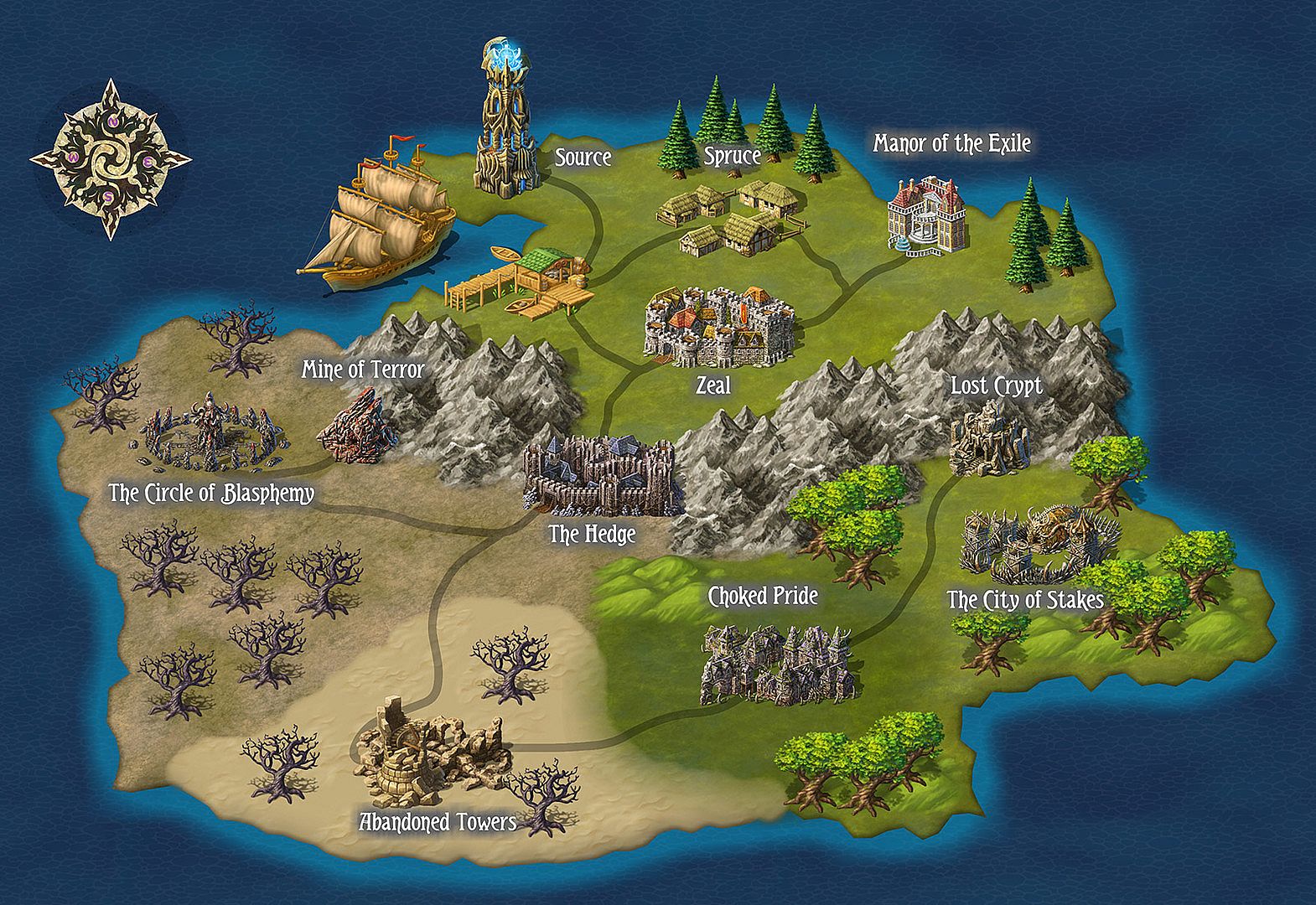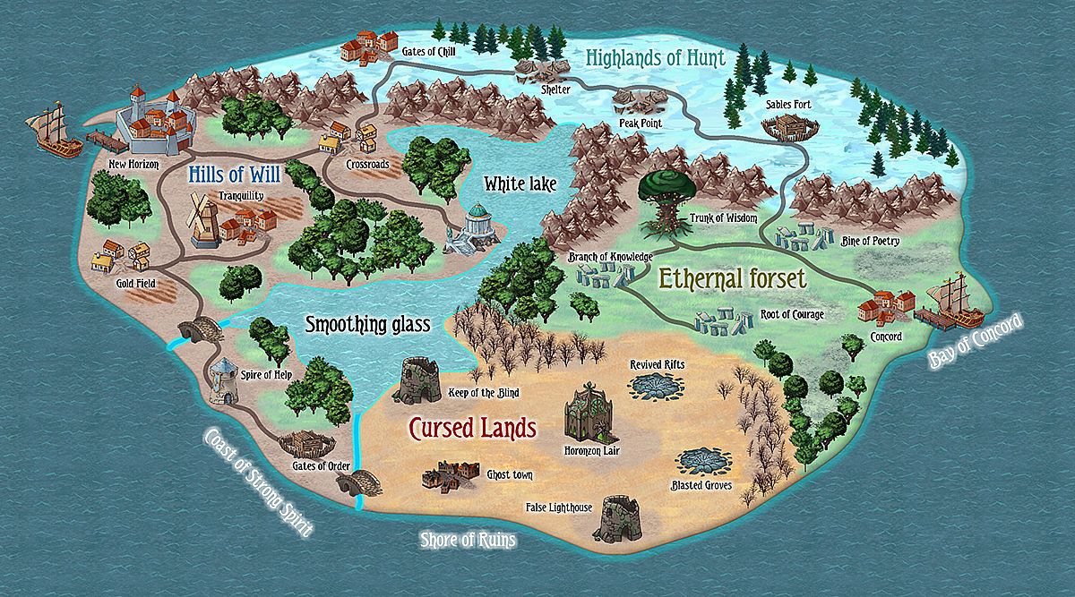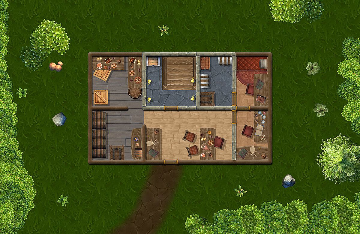 - Tilesets for indoor, outdoor and world maps