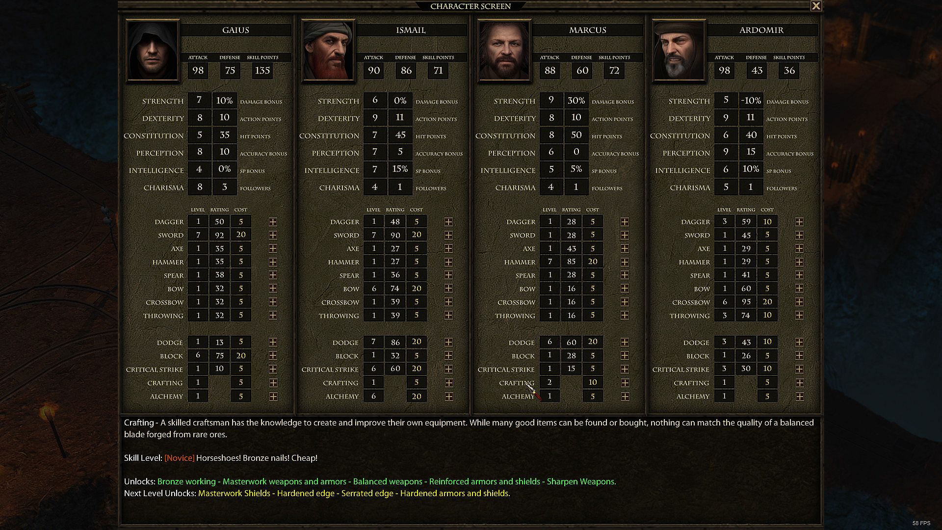 - Charisma determines the number and quality of your party members.