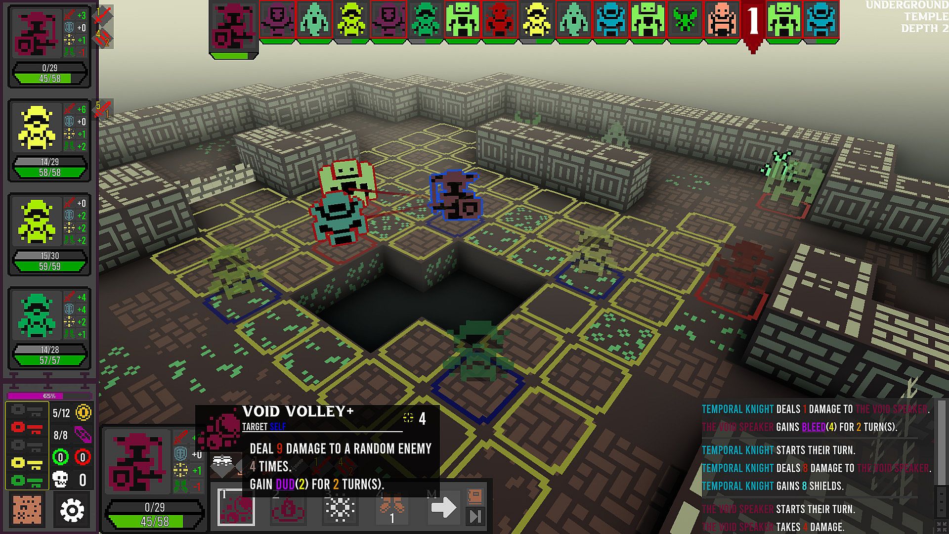 Each party member has their own unique slot machine. Each turn the slot machine will give you 3 random abilities from your reel. Make the best decision each turn to dominate the battlefield. Get 3 of a kind to trigger your party members unique jackpot ability.