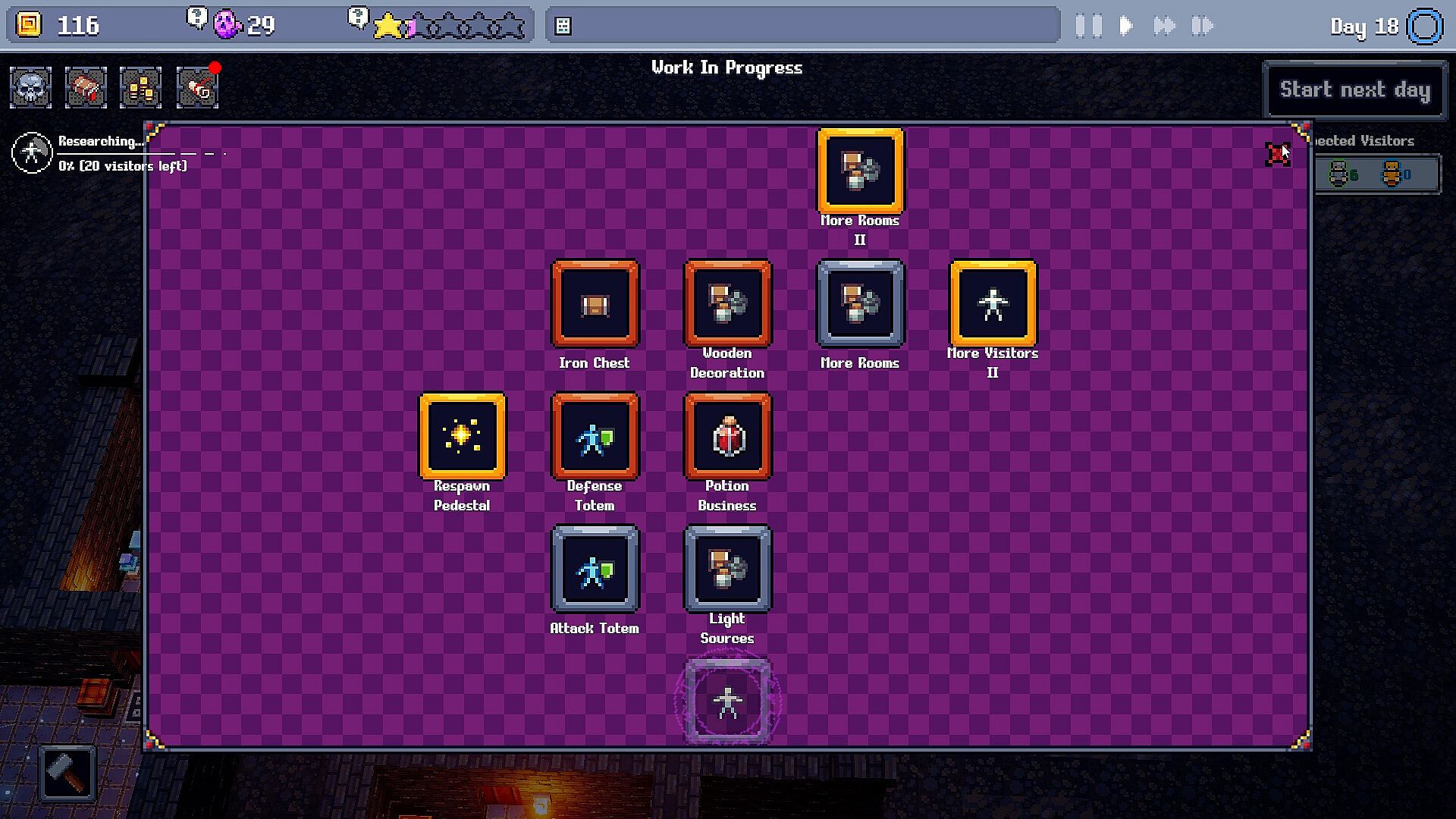 Build and manage your own dungeon in this free simulation game. Design layouts, position traps, hire monsters, and place treasures to challenge incoming heroes. Watch visitors navigate your creation, sell them potions and aids, and refine your setup for better results. Summon creatures from two fierce realms, upgrade them, and complete over 30 researches to unlock 40+ objects, 6 enchantments, and new improvements. The prologue offers 14 playable days, 10+ monsters, 4 unique visitor classes, and procedurally generated quests with 20+ rewards. Strategy fans who enjoy dungeon management and hero defense will find plenty to optimize here.