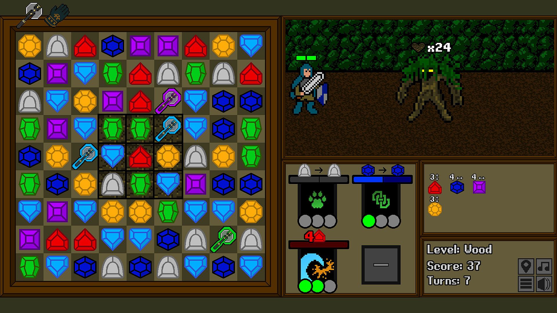 Dungeons & Jewels is a tile-matching roguelike inspired by classic PC puzzle games, such as Puzzle Quest and Bejeweled - in the style of modern roguelikes such as Slay the Spire.