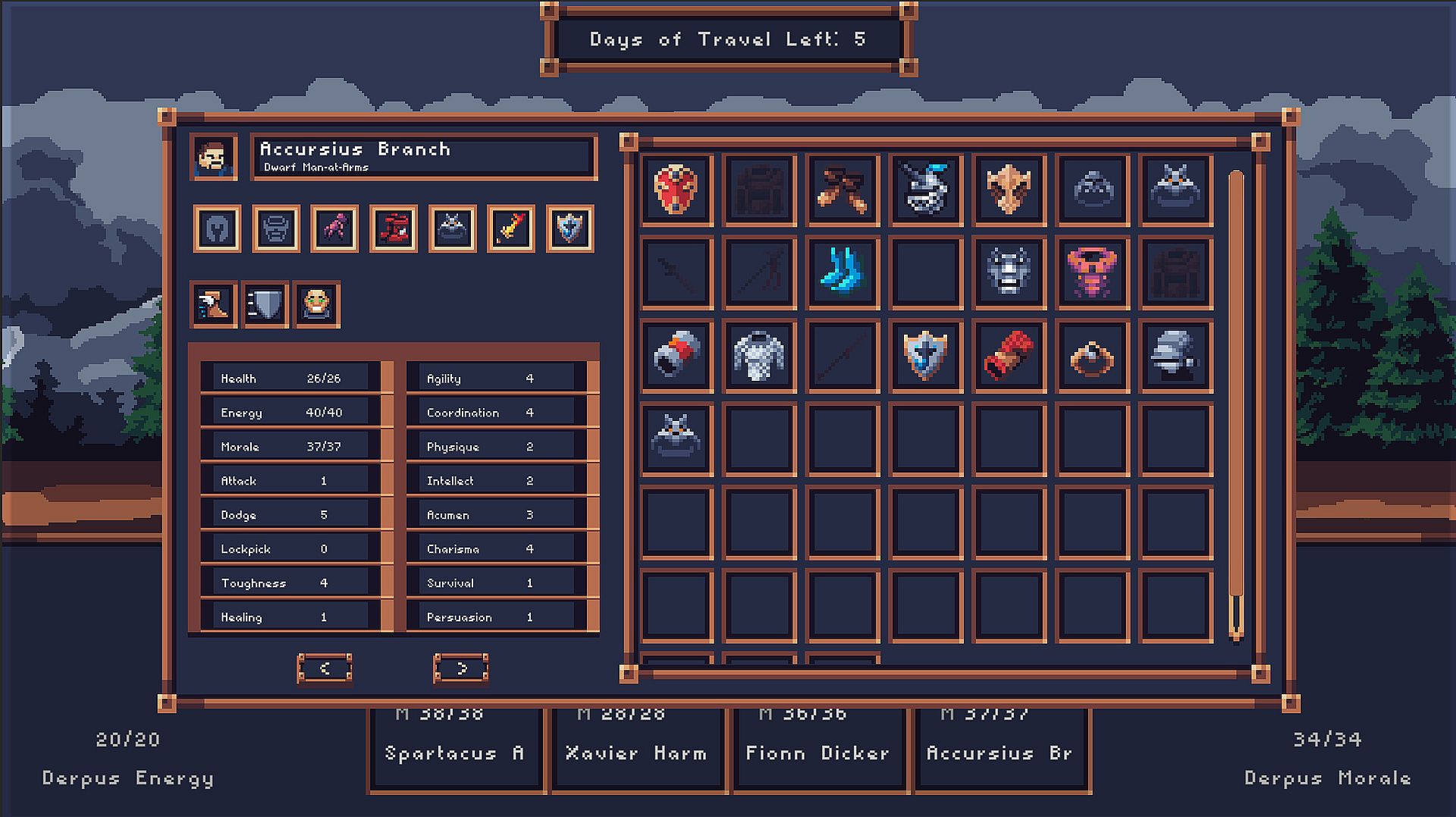 Never the same trail: navigate the generated trail and manage your party through a variety of biomes. Each biome has its own unique encounters and enemies;