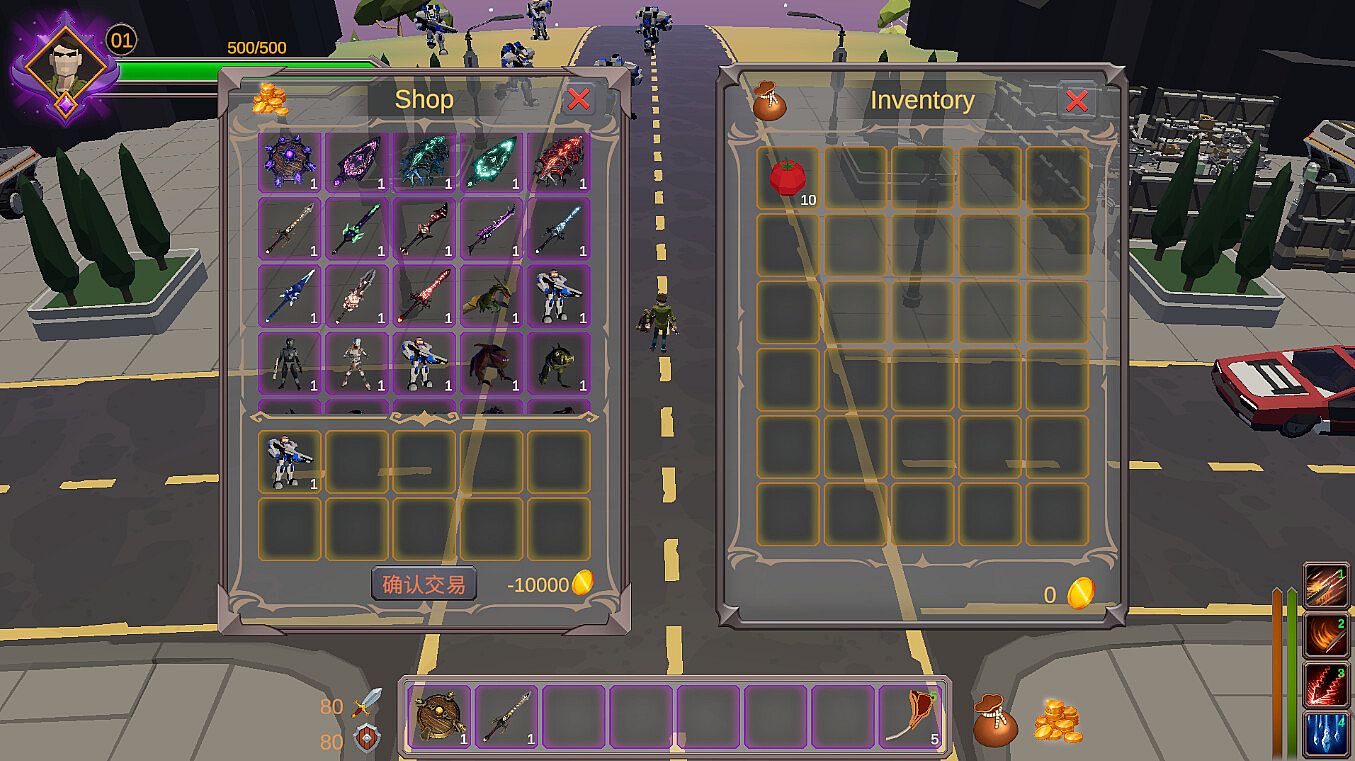 1. Players can freely exchange food and weapons into gold through the store, and then use the gold to buy more powerful swords and shields, and follow the battle Mech warrior, can accelerate the flying dragon mount, the dragon can fly to other planets; Shop items are bought and sold equally.