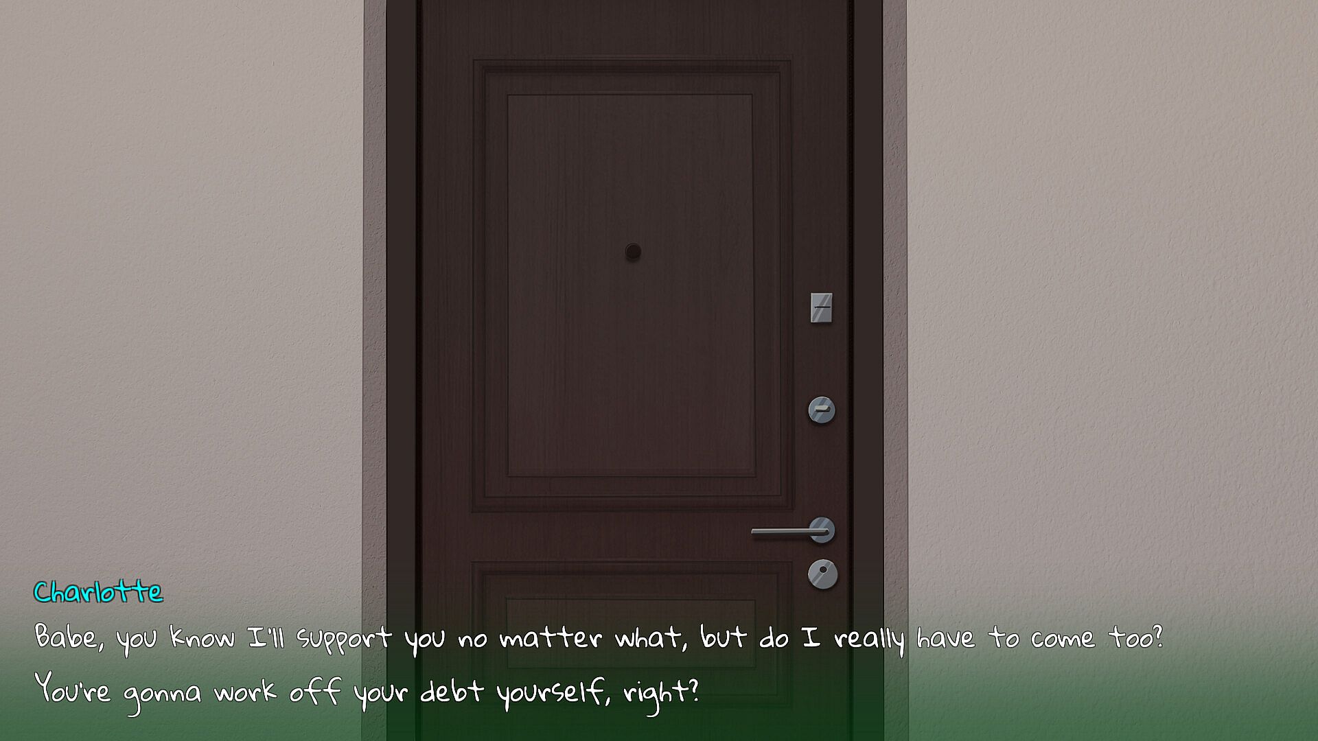 Step into the role of James, a cunning and charismatic loan shark, sitting across from your desperate debtor and his beautiful girlfriend Charlotte. The stakes couldn't be higher: their freedom - or her.