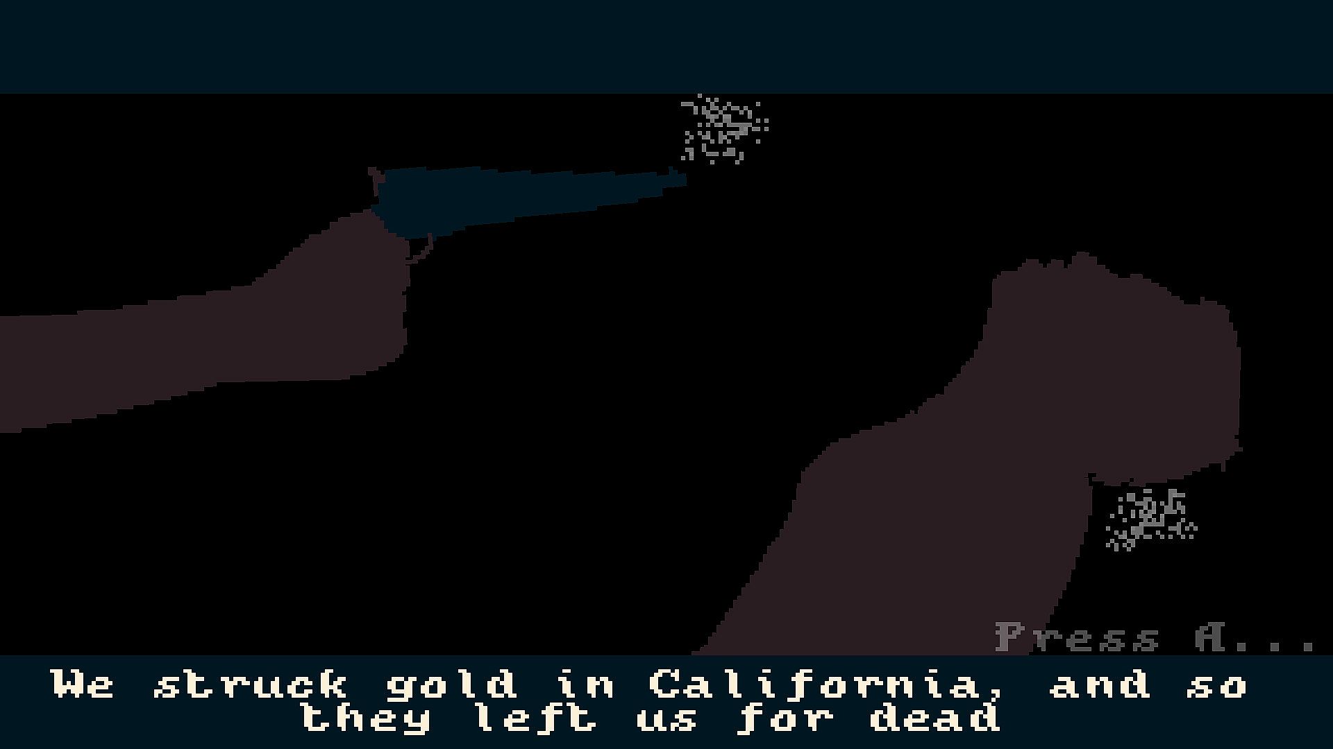 Mexico has just ceded the California territory to the United States. When a miner is murdered after finding California gold, his spirit seeks to lead others to enact revenge. Every encounter along the way presents a unique challenge with multiple solutions. What will you do if an outlaw camp is in your path? Carefully sneak around, go in guns blazing, or lure a wild bear straight into their midst? This "western roguelite" allows you to choose a Wild West career, load up on supplies, and journey through a randomly generated west filled with glory and silly deaths