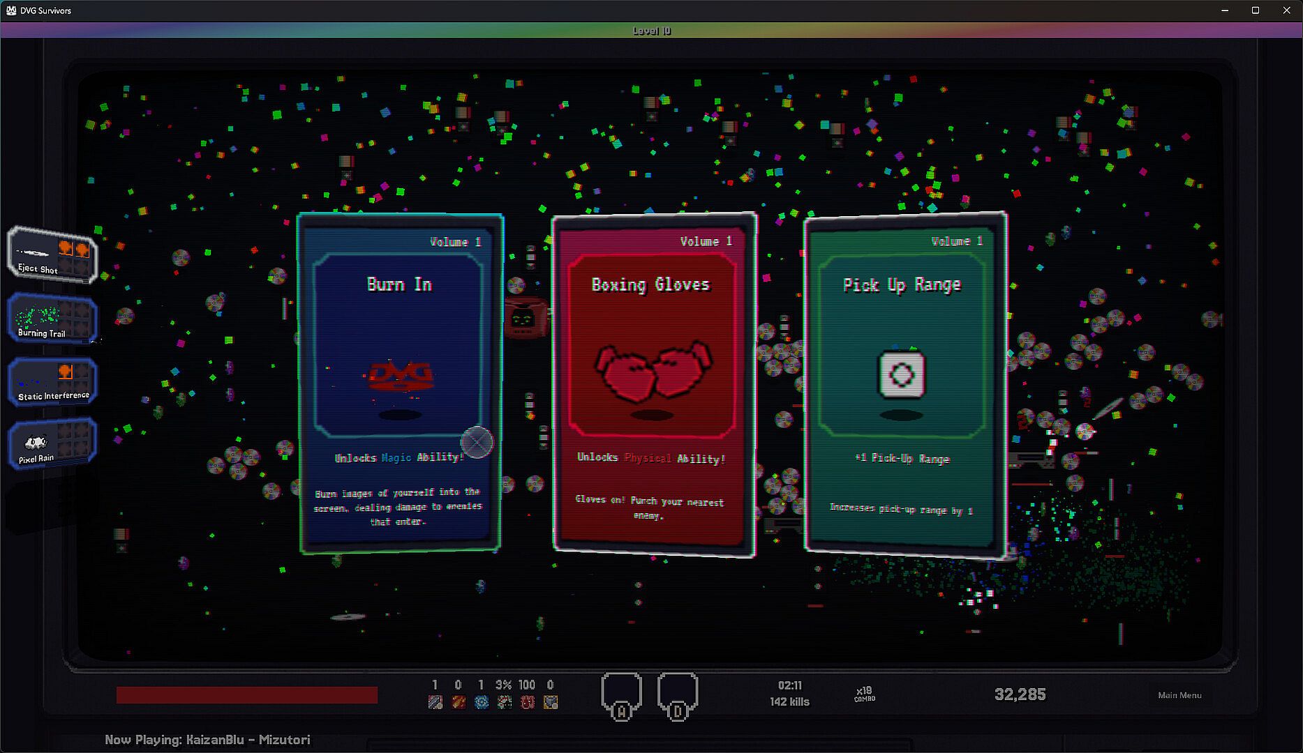 DVG Survivors is a casual idle-roguelike-survival game where you watch your DVG bounce across the screen and destroy your enemies. Who are your enemies? Well none other than other mixed media from across the ages. If it could store data, it is out to get you! Level up and choose from an array of abilities to battle various enemies from floppy disks, tapes, cassettes, reel-to-reel's and more!