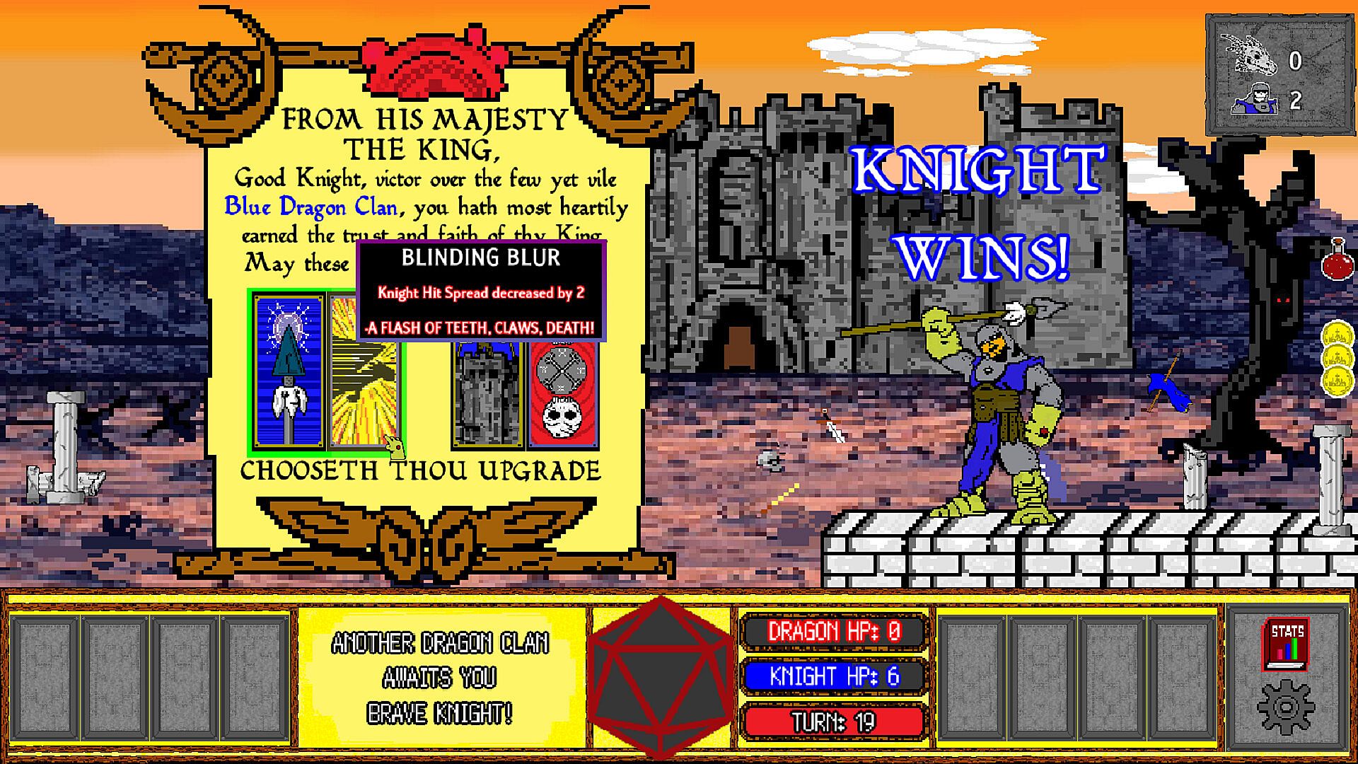 Unleash your tactical brilliance by choosing upgrade cards that power up your knight. But beware, every upgrade you claim makes the dragon clans even deadlier, raising the stakes for an epic showdown.