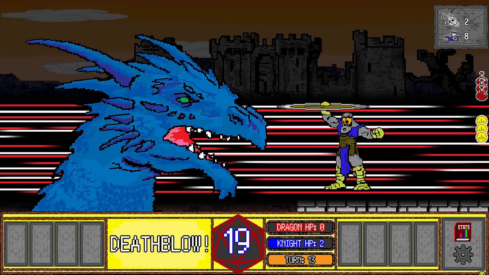 Dive into a heart-pounding, turn-based clash of Dragons Versus Knight.