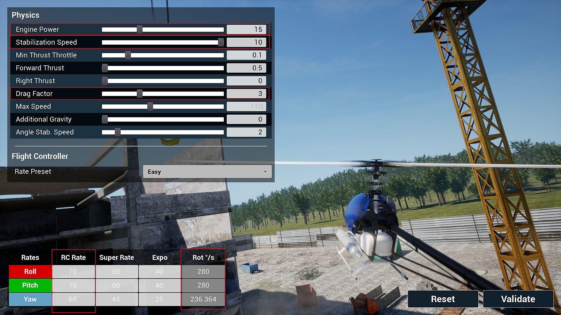Drone Racing FPV Simulator lets FPV pilots hone skills in Freestyle and Racing modes. Adjust drag, angular drag, interpolation times, gravity rates, motor power, and throttle settings through the in-game physics editor. Pair it with gamepads or real radio transmitters, using stored calibration files to share setups with friends. Virtual Reality support mimics real FPV goggles by default, displaying the same image to both eyes for a motion-sickness-free view like a large screen. Switch to stereo mode for deeper immersion, though it may cause discomfort. This action simulation suits experienced FPV pilots training on PC.