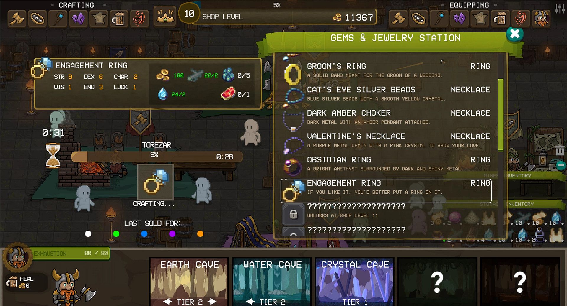 Crafting even levels up your shop so your dwarves can get stronger and discover better recipes!