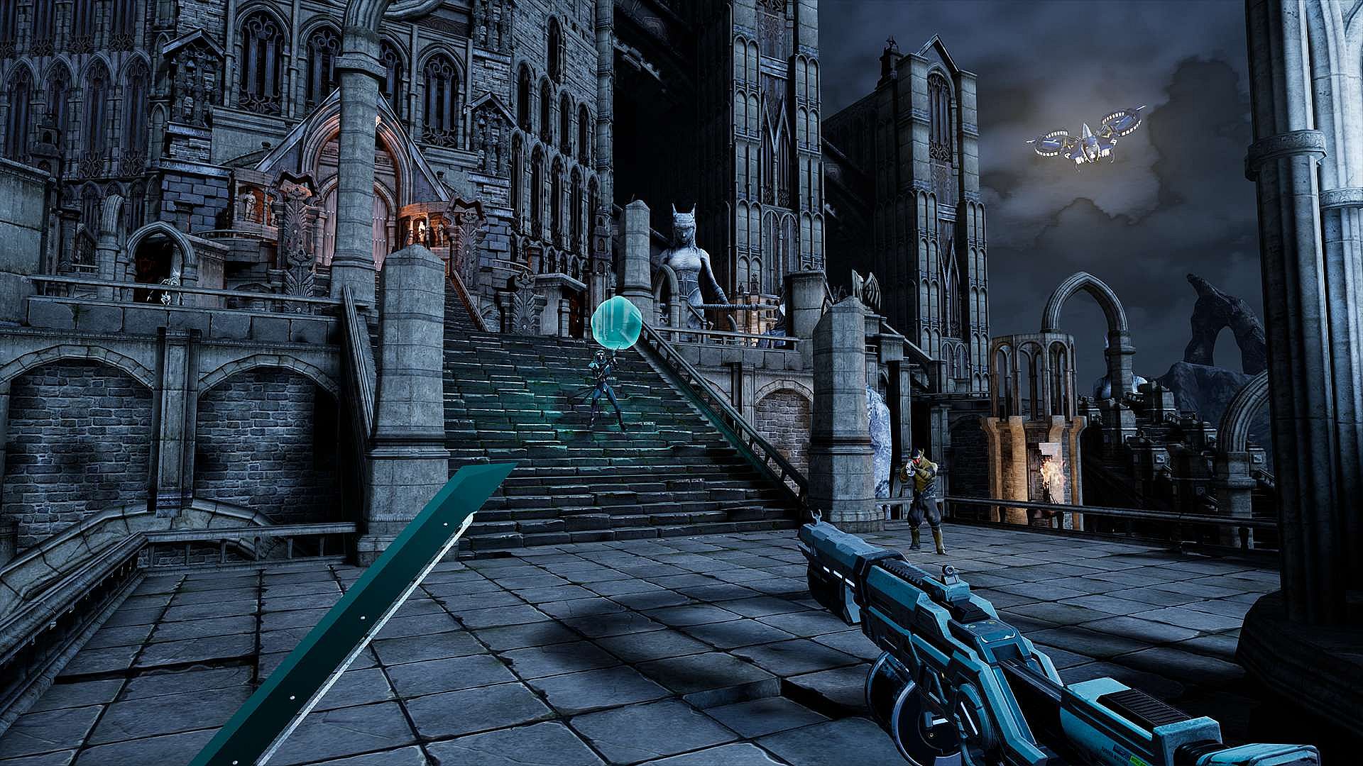 Includes many different weapons, from rifles to even a sword or magic fireballs, and many different enemies to fight.
