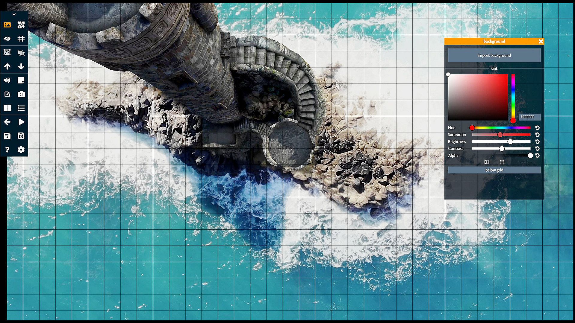 Import Dynamic Dungeons maps or your own images or video files into the storyline and make a playlist, cover and reveal areas with the fog of war tool, apply custom size hex or quad grid overlay.