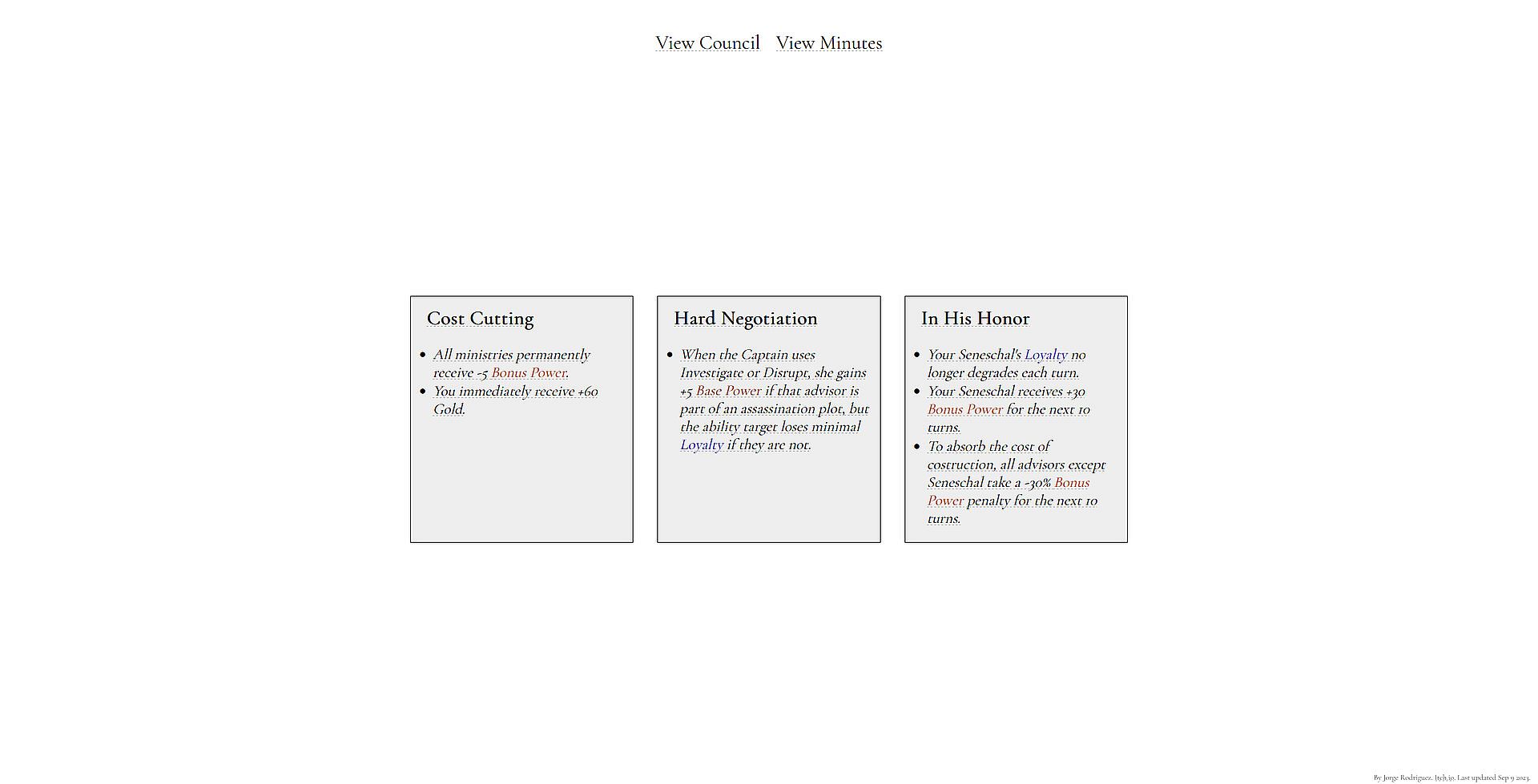 - Play a social deduction roguelike in which you must avoid assassination by your advisors as you administer your kingdom.