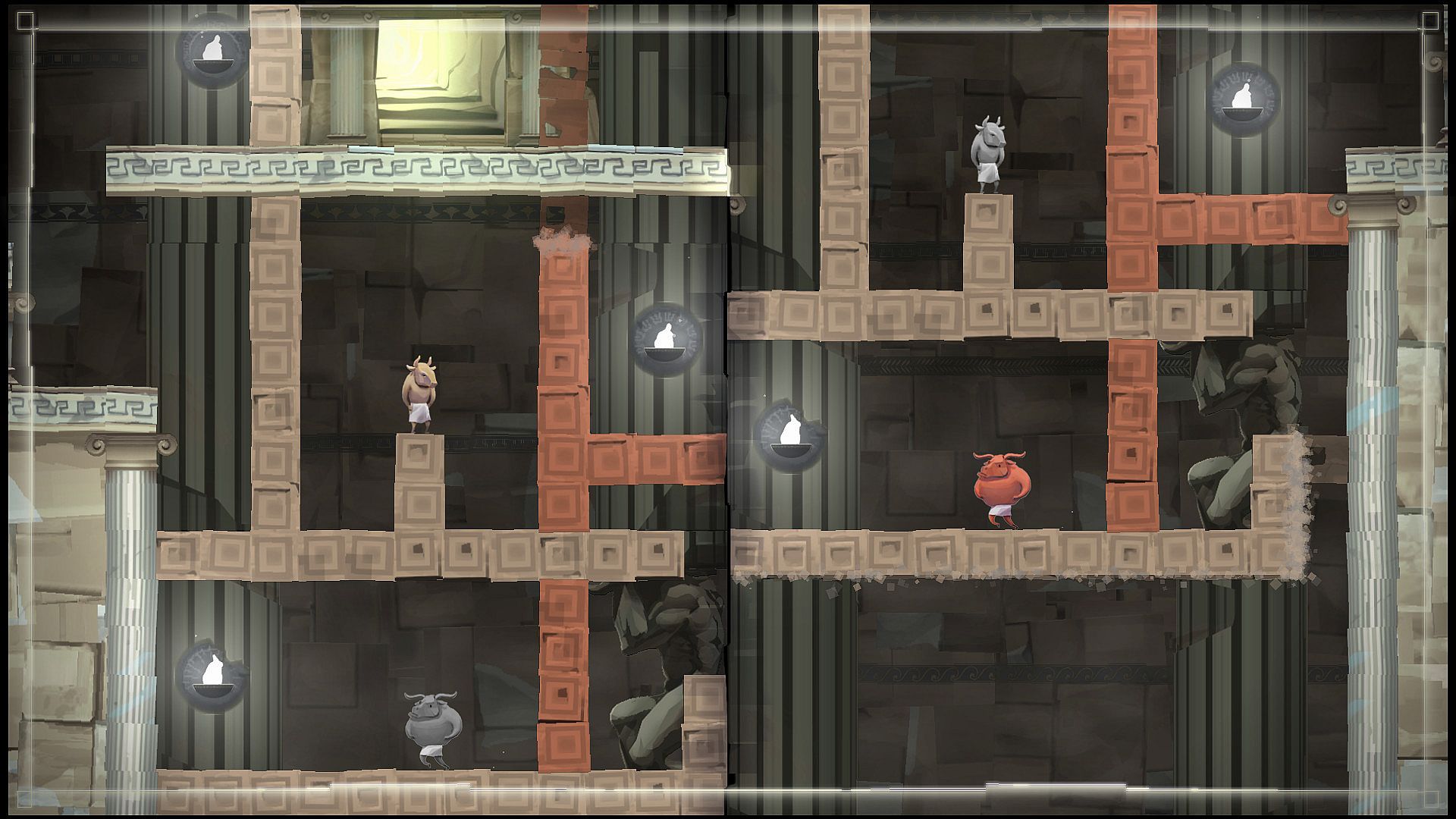 DYO is an award-winning local co-op puzzle platformer for one or two players in which you navigate two Minotaurs through a seemingly impassable maze and solve mind-bending puzzles. Each Minotaur is trapped in their half of the split screen – but only in a combined effort can they escape the cursed labyrinth.