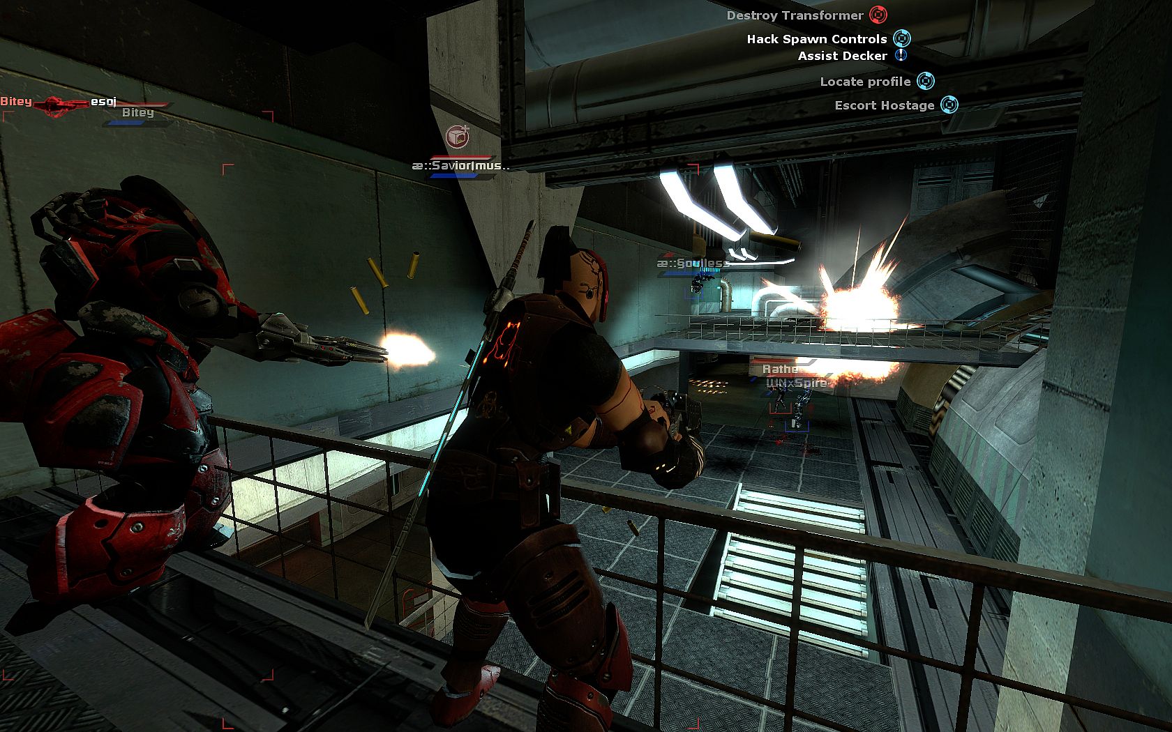Cyberspace is a three-dimensional representation of the world's network. Inside cyberspace, players will launch programs to hack into systems linked to the physical world while fighting off enemy hackers and defending critical systems. Gameplay progresses through inter-linked physical and cyberspace objectives, some are completed in either the physical world or cyberspace, others only by a well-timed combination of the two.