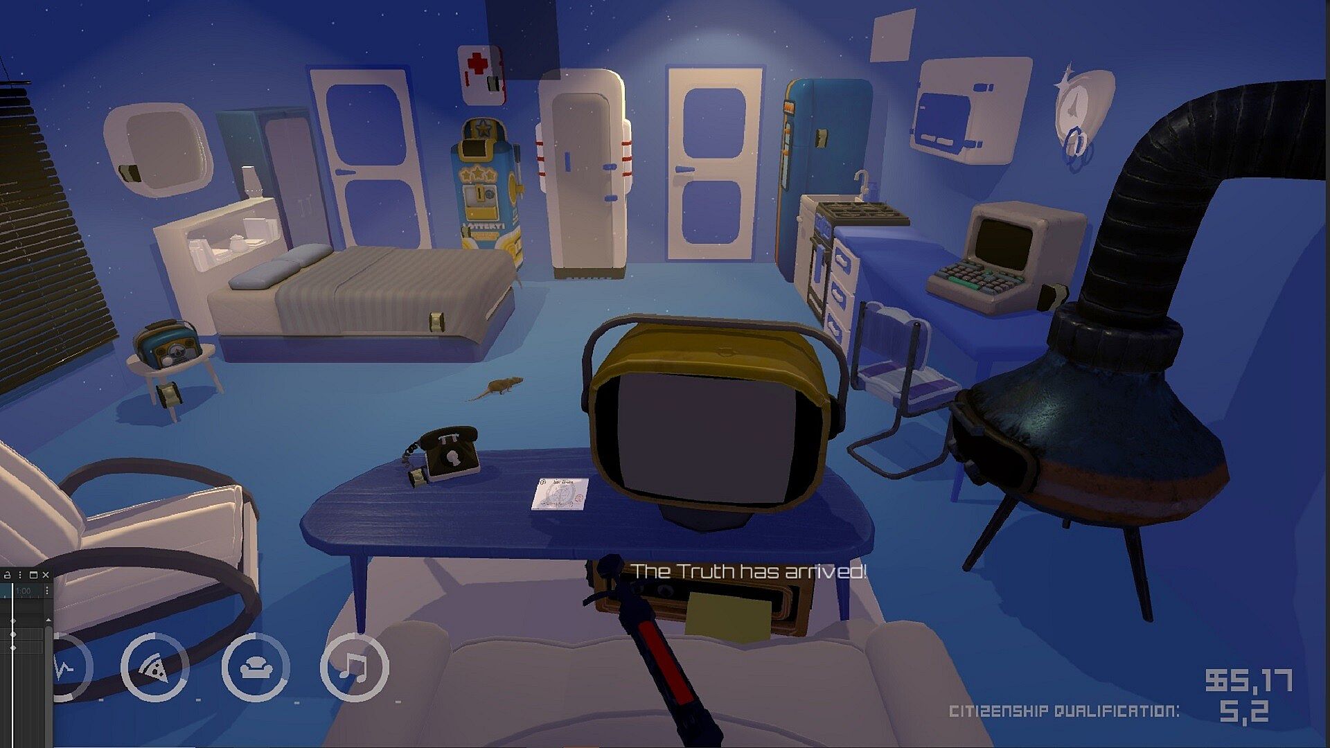 Live in a dystopian society where your job is to watch TV to earn money and purchase services to satisfy your needs. Investigate your surroundings and choose whether to be a good citizen—or rebel. But remember: curiosity comes at a high price in this dystopian life simulator.