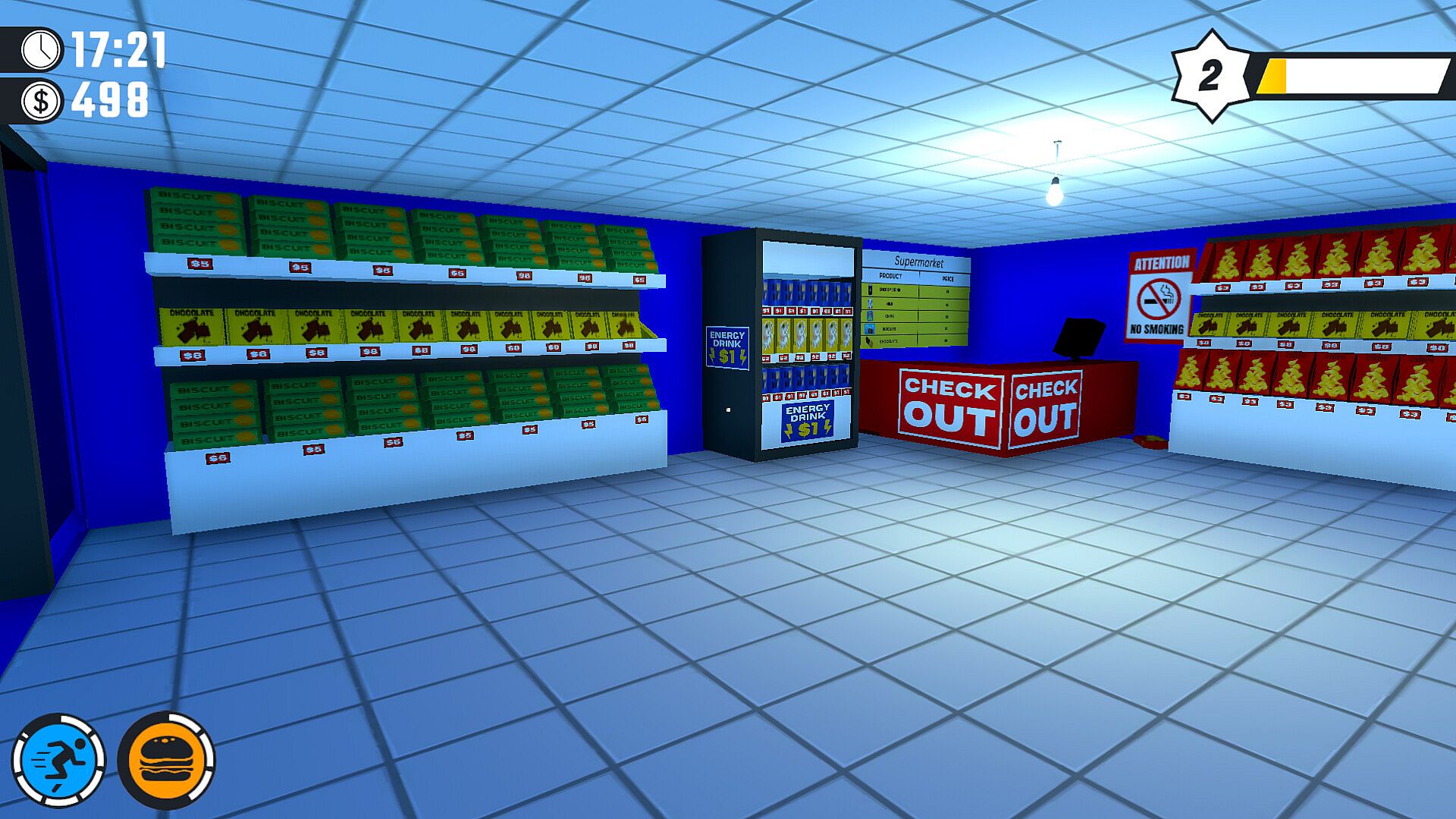Real-Time Survival Systems: Manage your hunger, sleep, bills, and time within a 24-hour day-night cycle.
