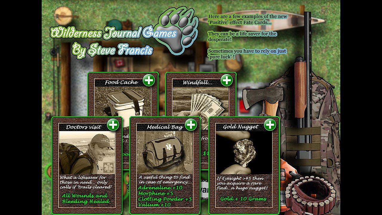 The drawing of 'Fate Cards' in order to achieve set objectives risks further positive or negative incidents to push players beyond pure survival and out of their comfort zone as they become more adept within the game...