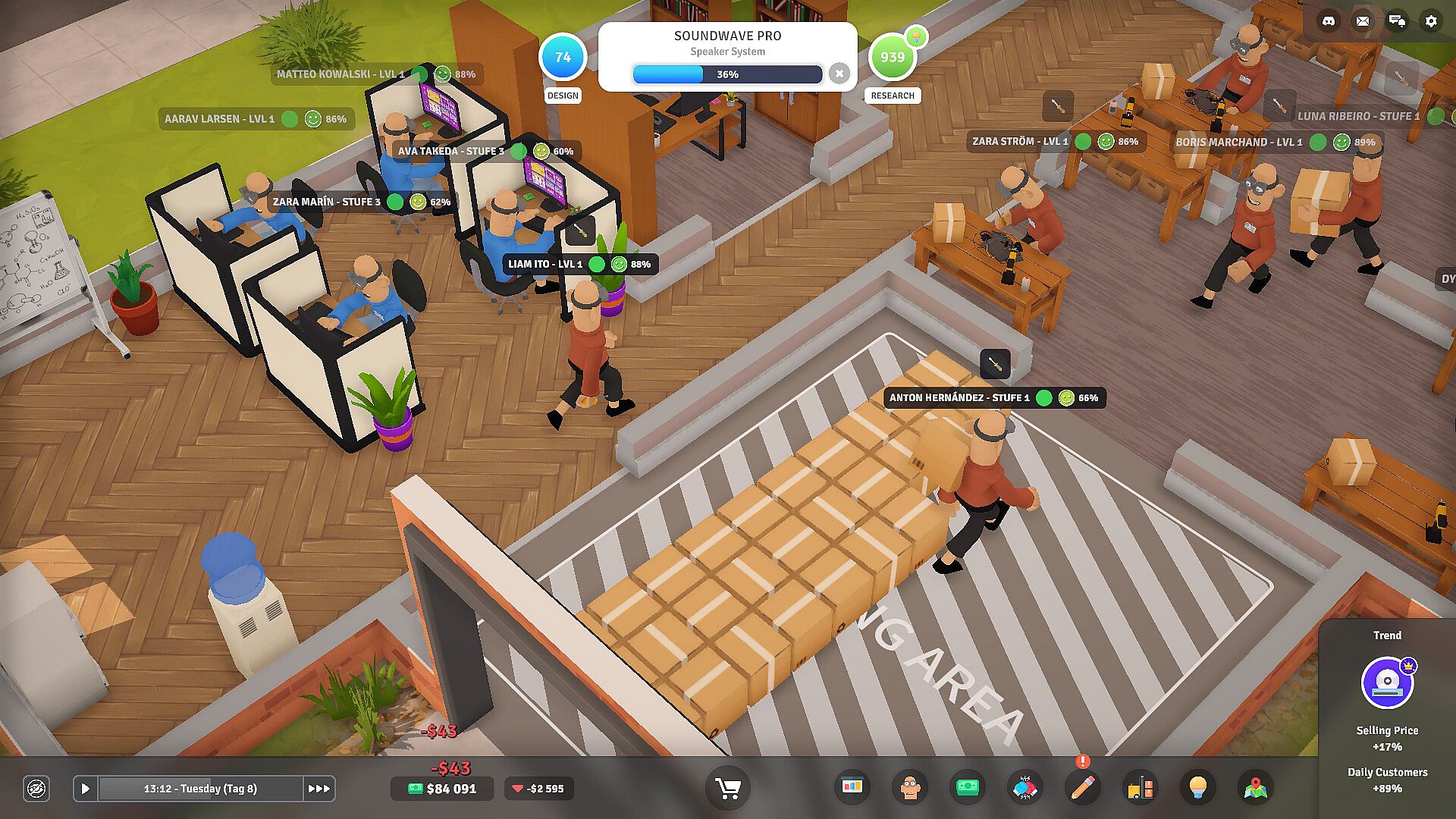 This prologue is a limited version of the full game, designed to let you dive in without waiting and start managing your product company right away. Don't forget to add E-Startup 2: Business Tycoon to your wishlist to continue the most engaging business management experience.