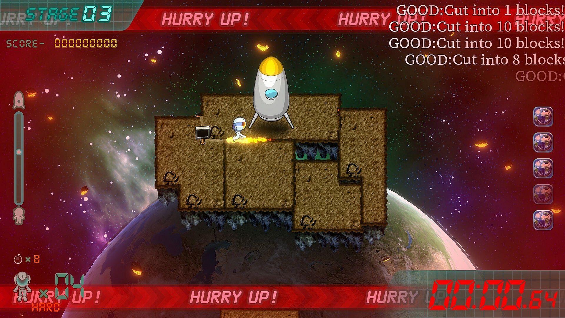 But if you're not careful, the large pieces will head straight for the Earth...!
