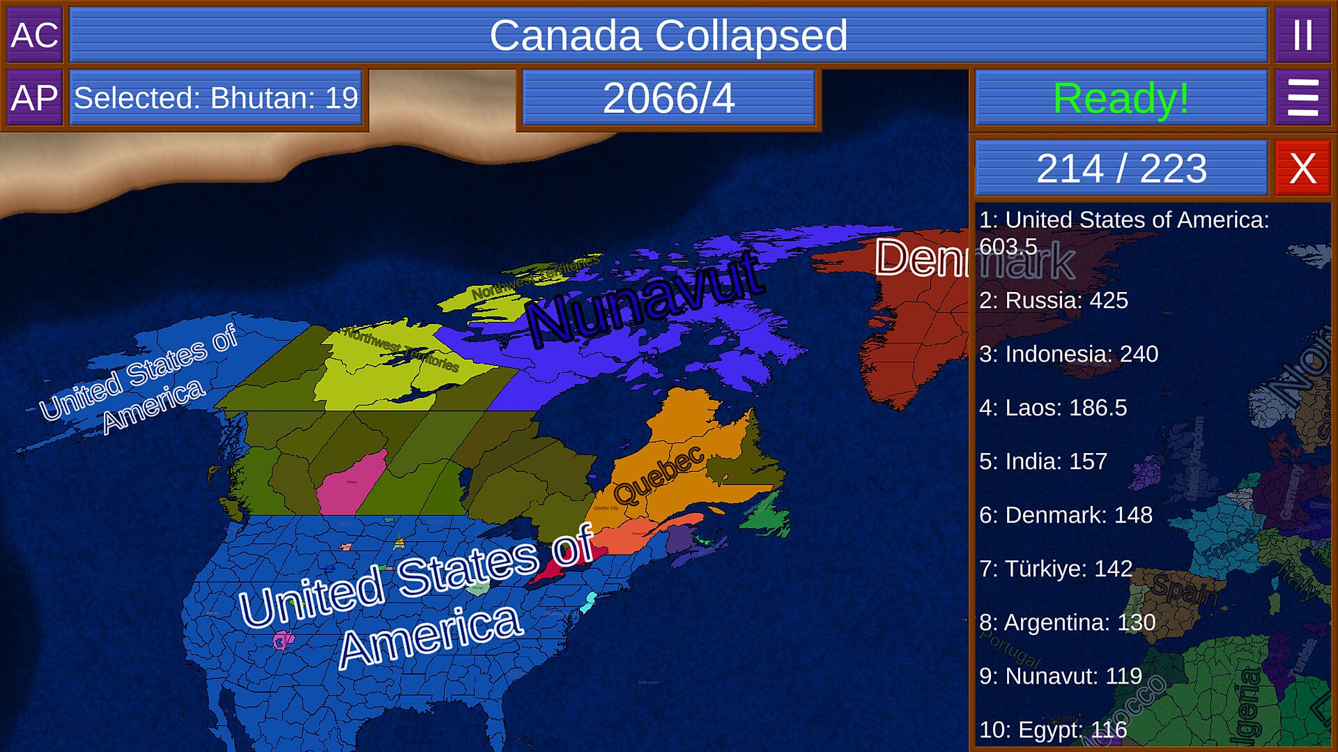 EarthRoyale is a Map simulation Observer game where the game each turn / a few in game months time, chooses one of many events to edit the world map or add lore behind the countries of this future or historic world.