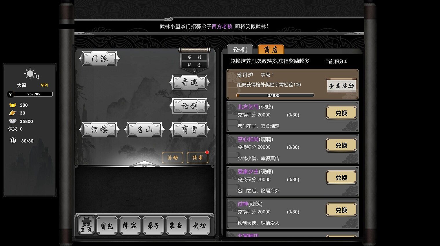 There are over 200 martial artists available for recruitment in the game, each with their own unique talents, abilities, and fate. Upon successful recruitment, they become disciples of their sect. There is a distinction between disciples themselves and their souls. Disciples are various characters who can directly go to battle; Soul is the soul of a disciple, and collecting a certain amount can be used to recruit disciples.