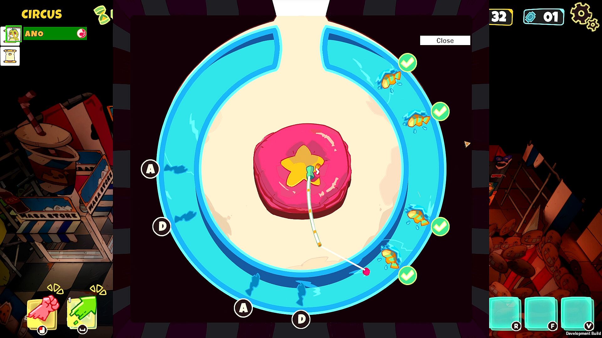 Got voted out early? Worry not. You will become a Defector. Defectors can still win by earning pennies in a completely different way. While active players continue competing in challenges, you can visit circus tents and play a different set of circus games to earn your pennies. These can then be used to influence the ongoing game by tempting active players with powerful offers! Some examples: