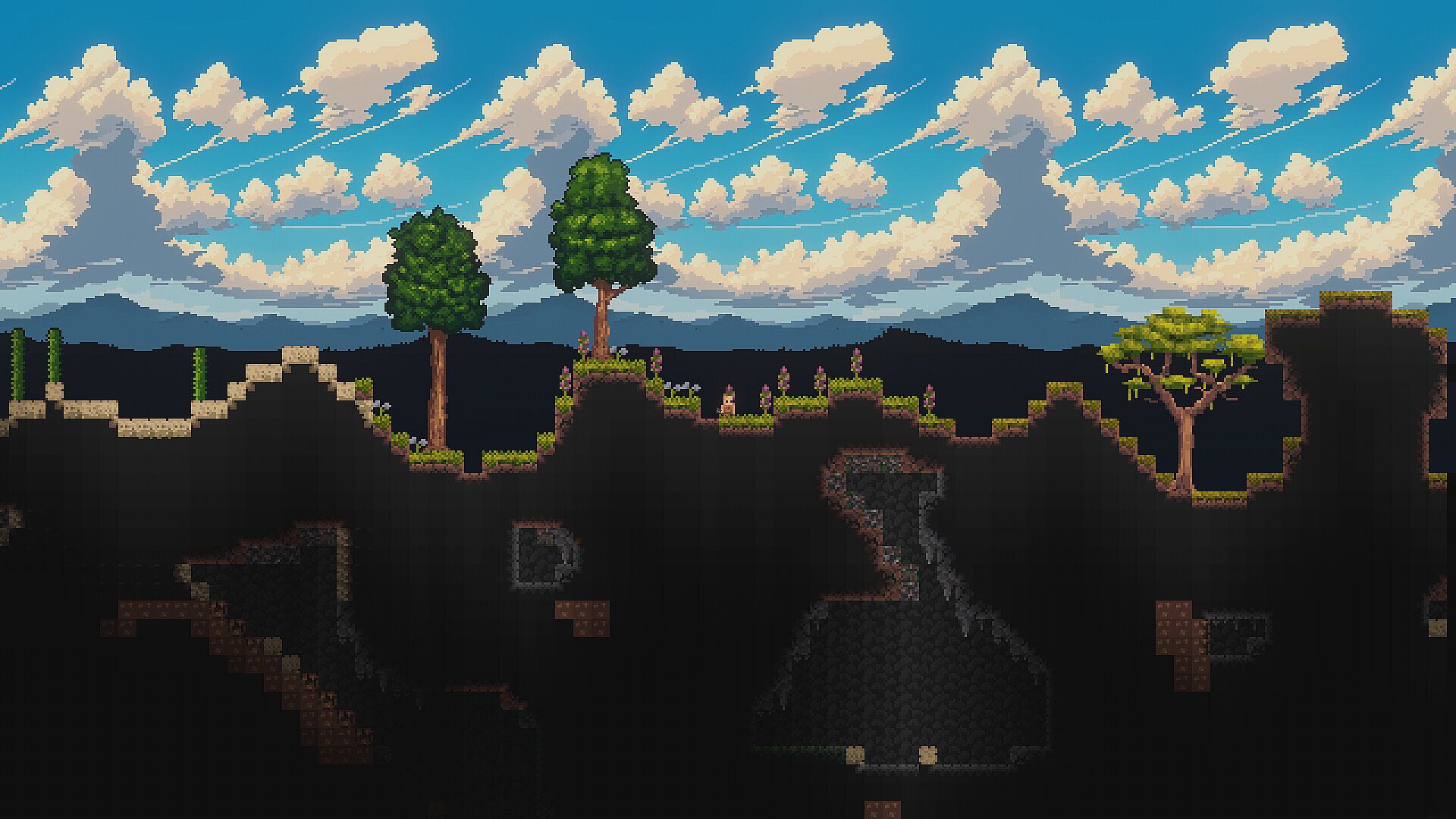 Dive into a 2D Fantasy world and create your own story within this sandbox world. Team up with your friends to embark on epic journey, build and conquer the world. Echoes of the Hive has endless possibilities, your journey begins as you step into a mysterious, procedural generated world. Together you will be able to venture across a diverse landscape, from the surface above to the deepest darkest caverns hidden below. Uncover rich biomes, each with their own distinct enemies and resources.
