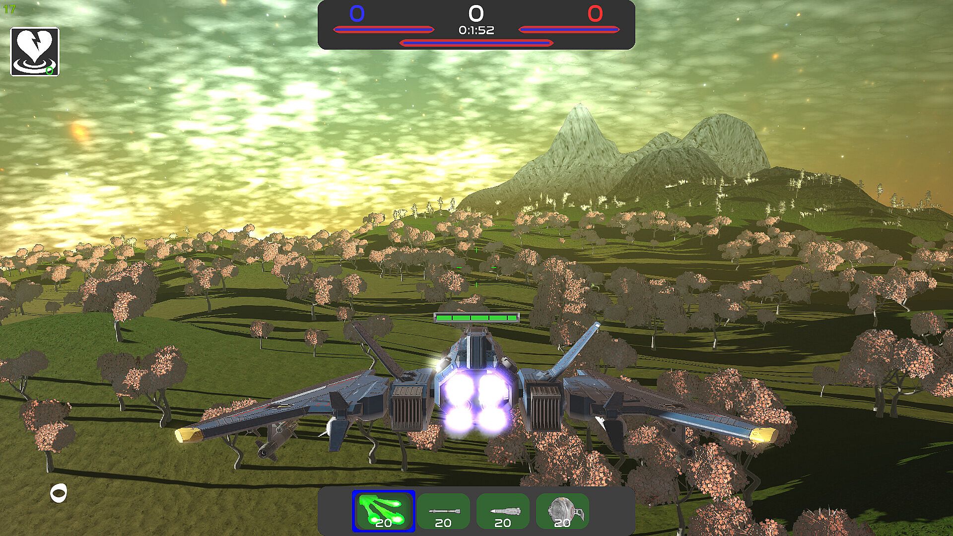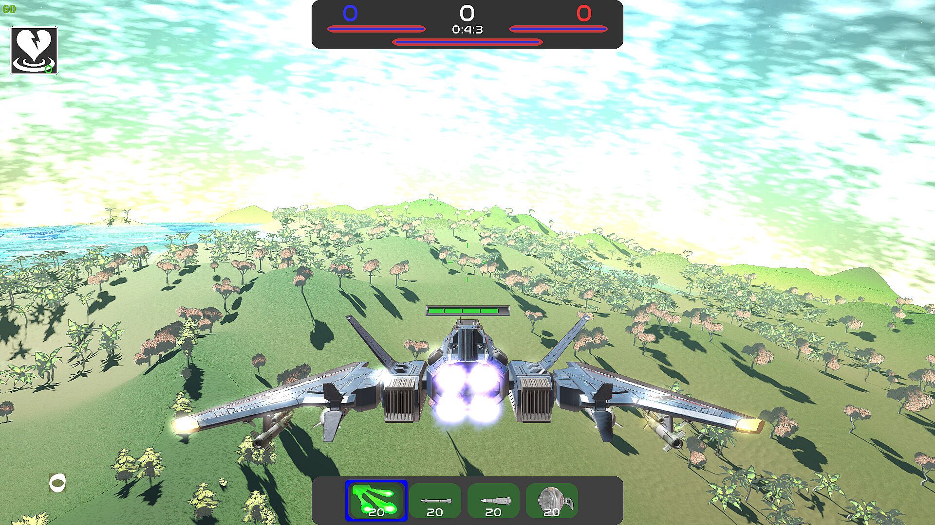 Experience the ultimate 3D space shooter adventure with our second level featuring two lush, expansive planets. Explore vibrant landscapes to collect ores, achieving victory through resource mastery, base destruction, or strategic base capture. Engage in thrilling flight simulation and combat both in space and through the planet's atmosphere, with intense battles from 1v1 to 5v5 in single and multiplayer modes. Dominate the cosmos with our dynamic ranking and scoring system!