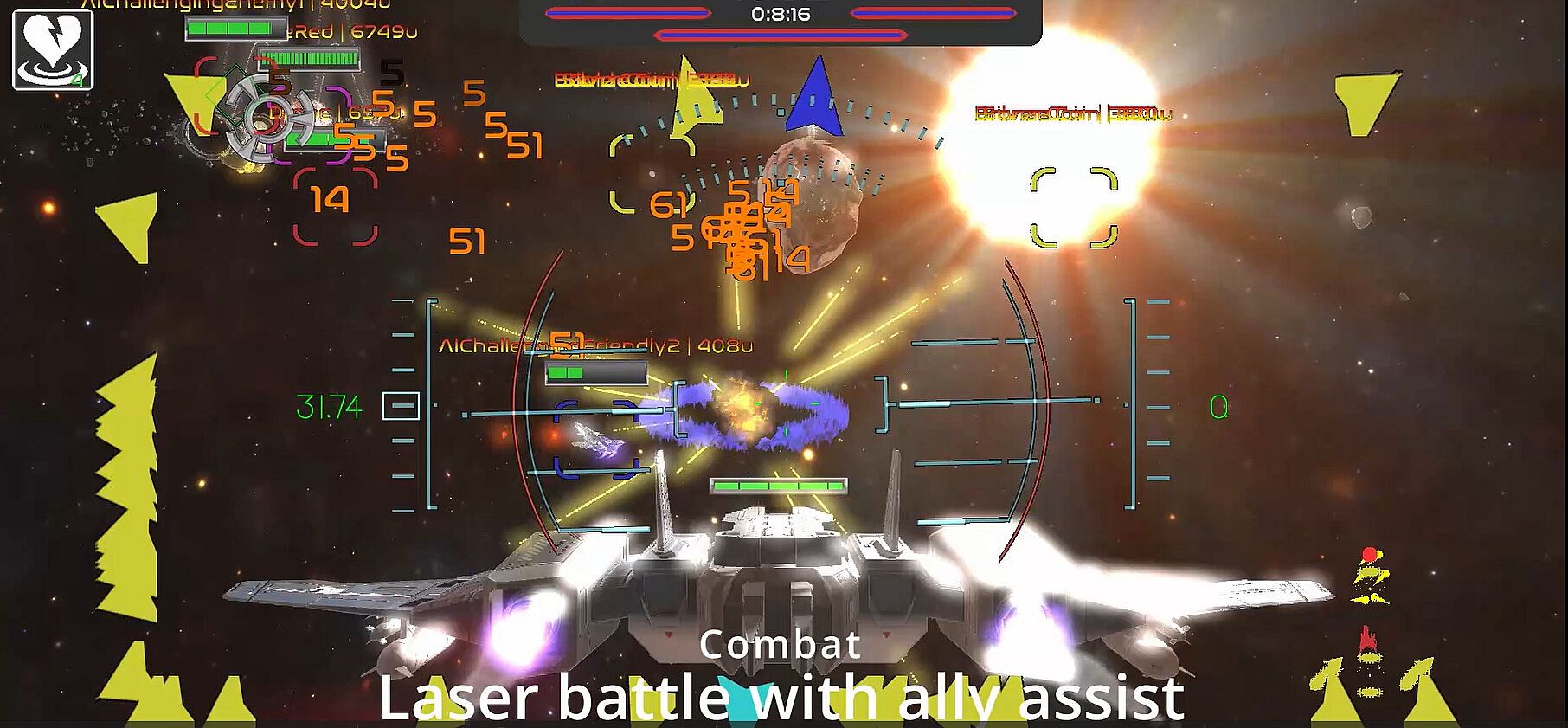 Embark on an adrenaline-fueled space adventure within tightly curated battlegrounds. Dive into the heart of action with our 3D space shooter, offering thrilling single and multiplayer showdowns from 1v1 to 5v5. Strategize, dominate, and experience the ultimate intensity with our innovative ranking and scoring system – all within the confines of a dynamic, focused game space!