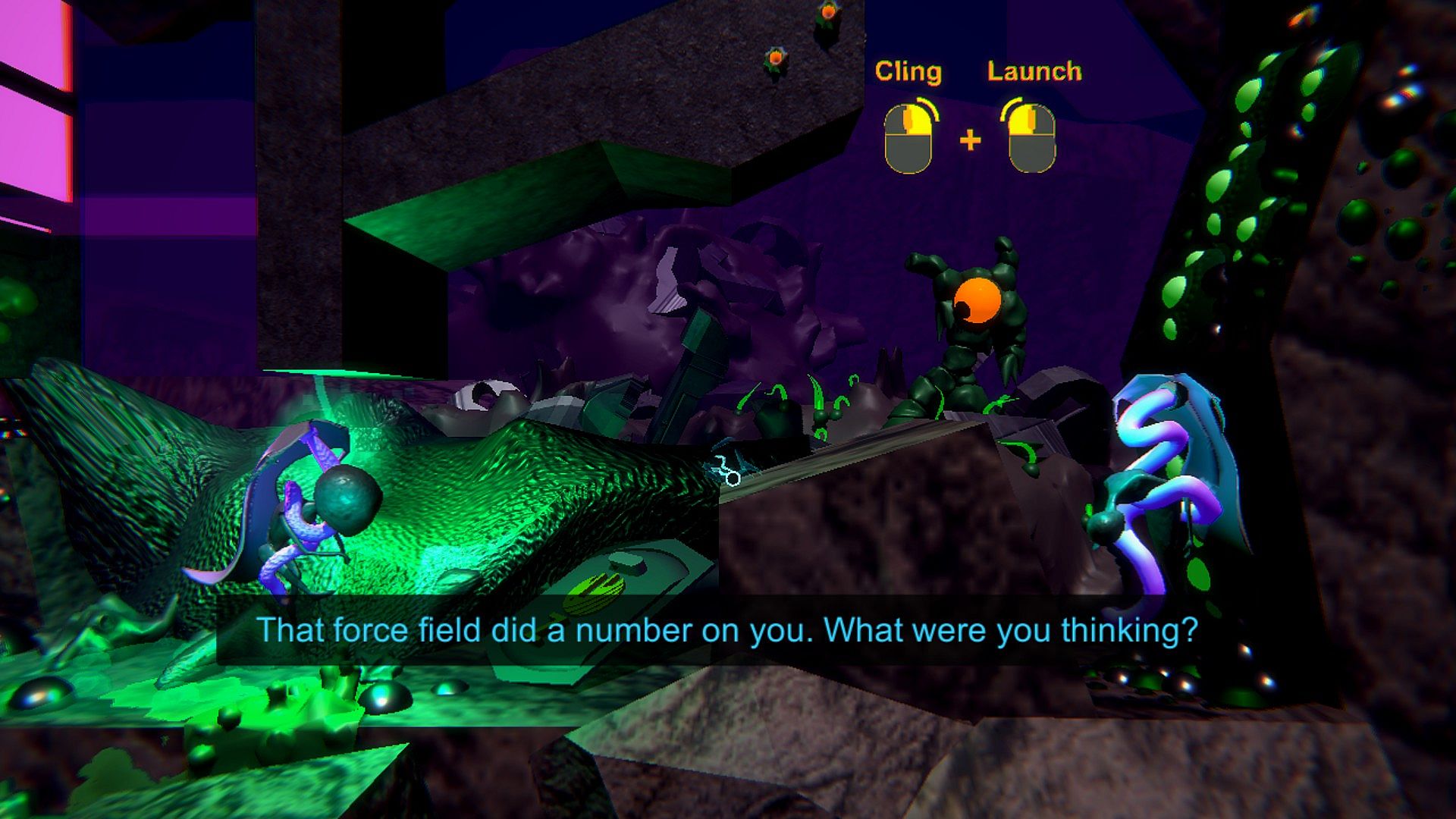 As the Outlier, leap and cling to surfaces. Harness alien ectoplasm to fly through the air. Collect nutrient to sprout alien seeds and solve puzzles. Explore cavernous environments in a fallen world of corporate cults, mad science and lost souls, where alien creatures slither through the ruins of a failed utopia, and the engineered slaves of the past toil ceaselessly to siphon ectoplasm from other dimensions.Use careful observation and dexterity to avoid the tentacles, spines and homing projectiles of dangerous alien creatures. Spread ectoplasm, turning the world from hostile to habitable -- by your alien standards.