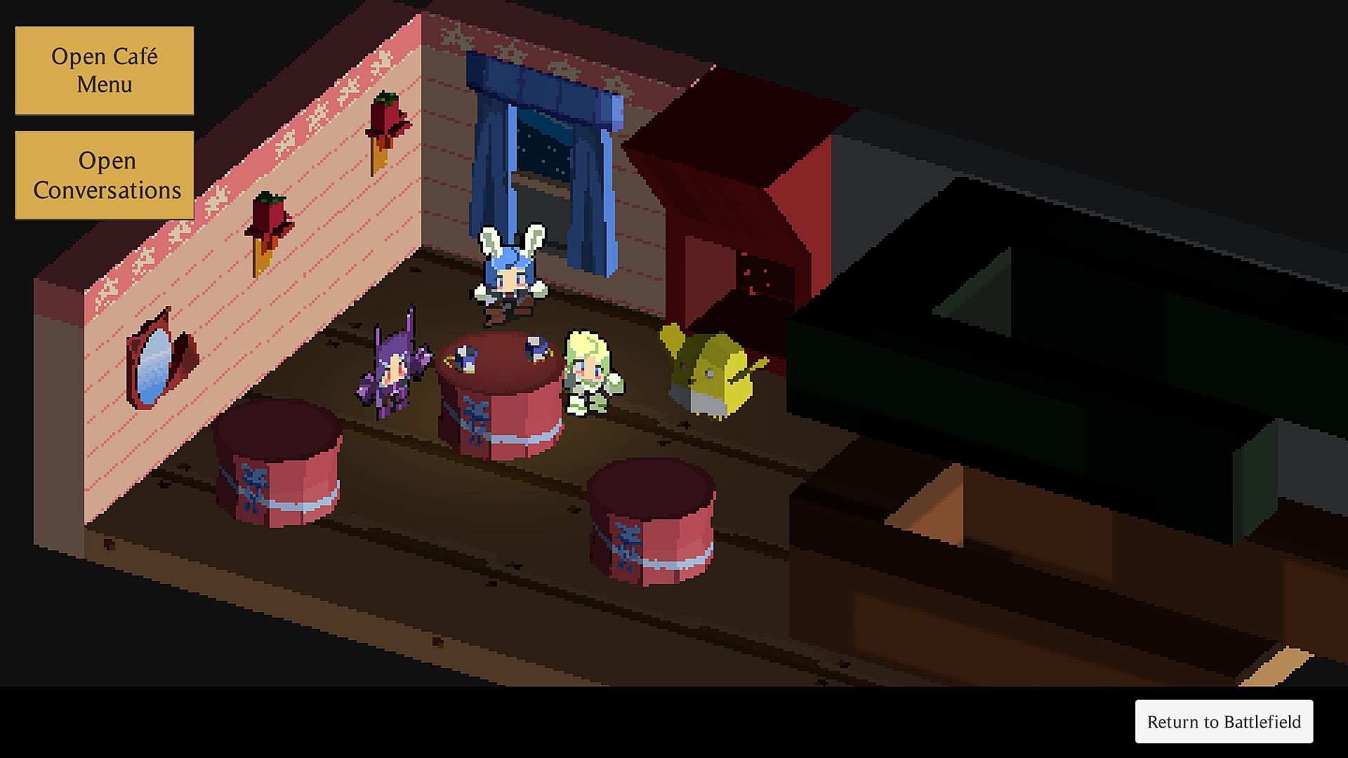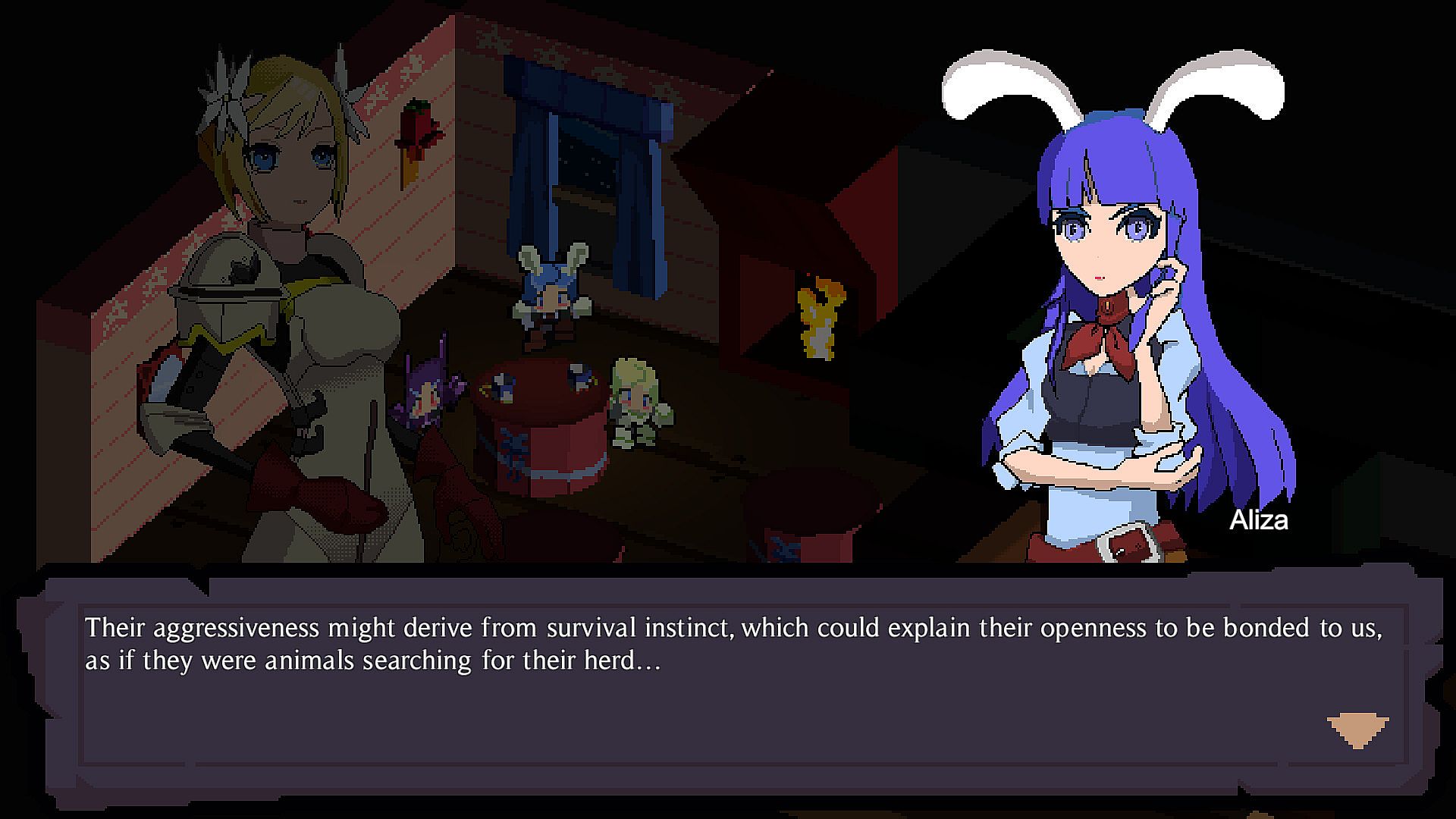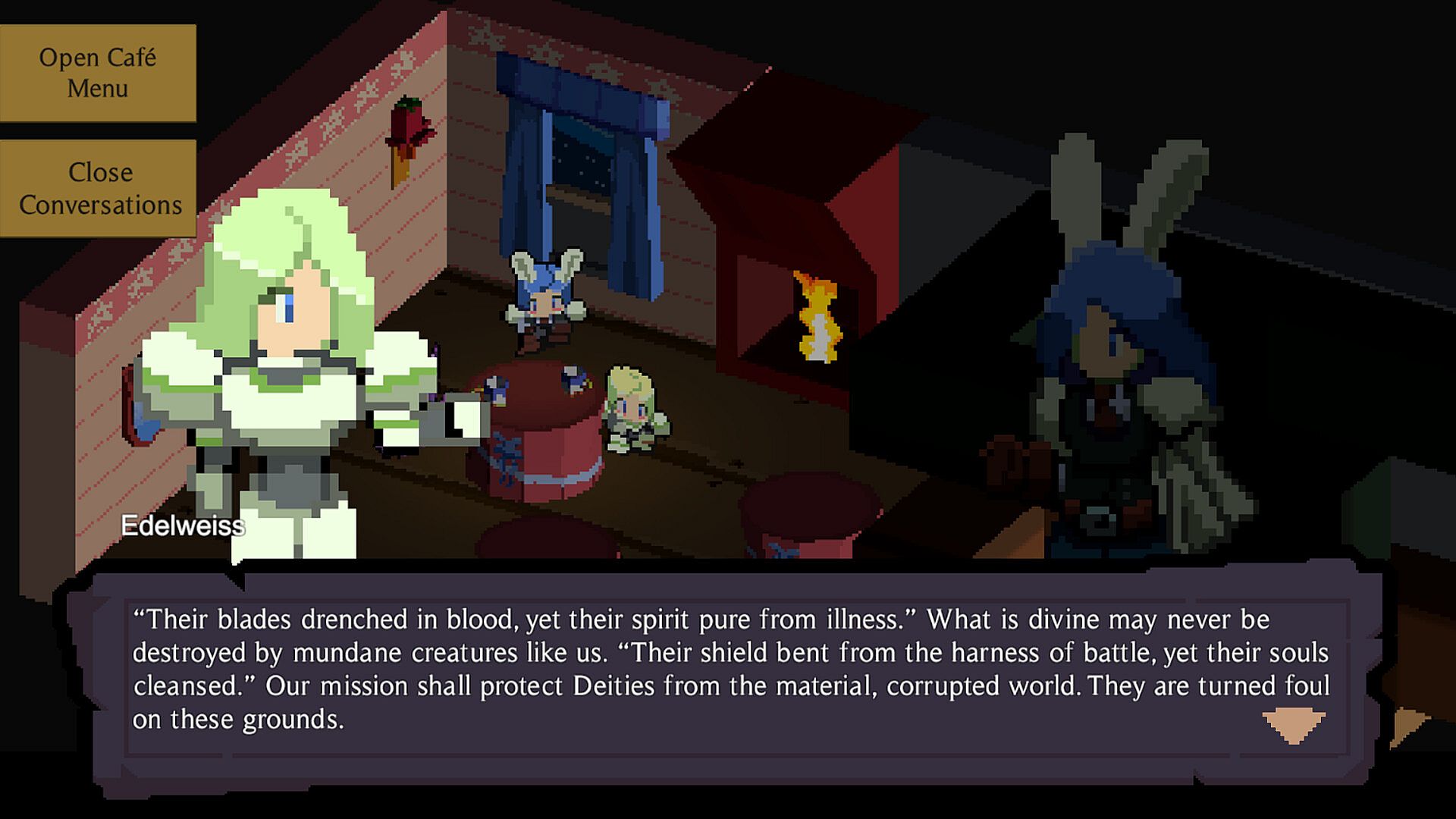 As the fight goes on, you unlock new VN-style dialogues that deepen the bonds between the three Knights: the champion of faith Edelweiss, the level-headed scientist Aliza and the war hero Violet.