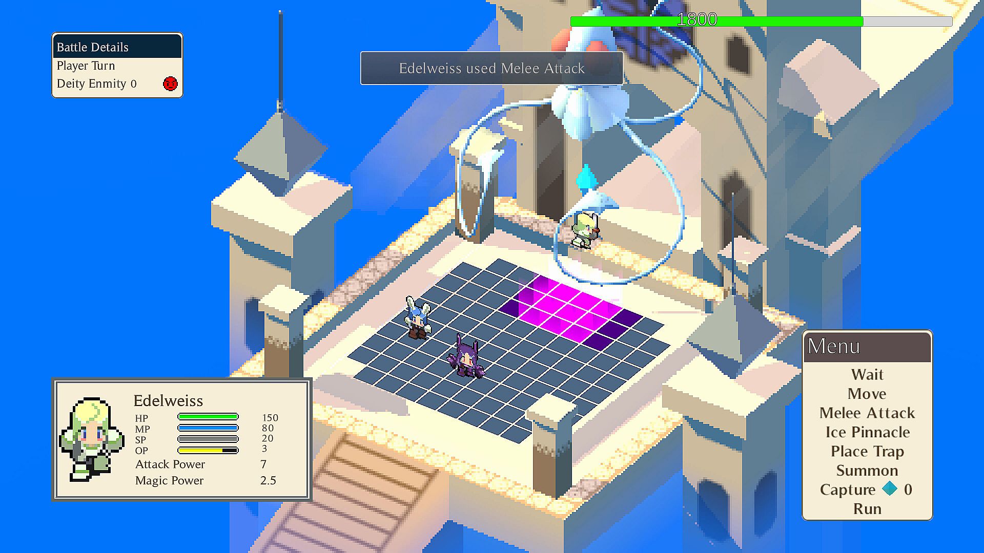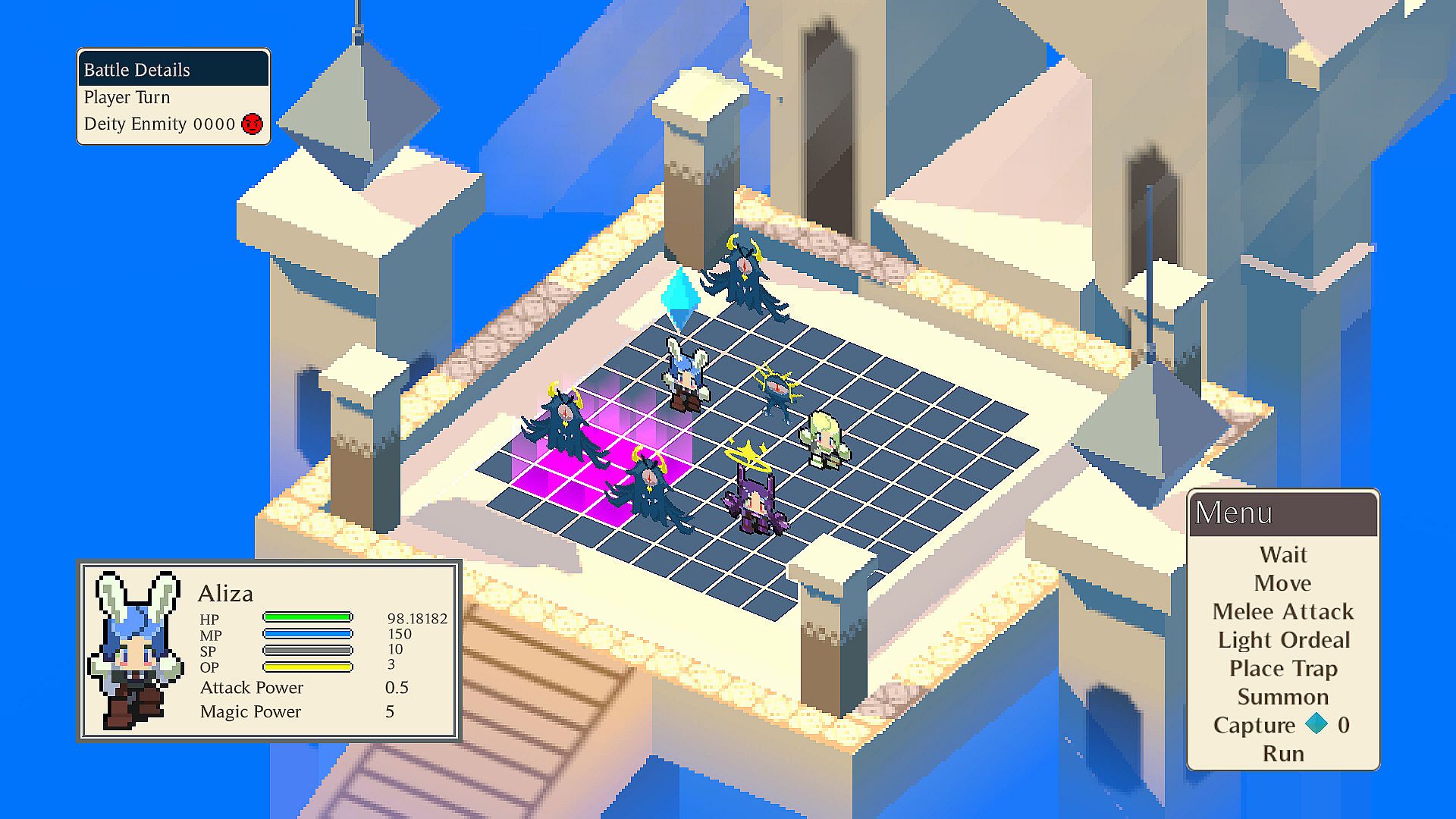 Deities ominously oversee the battlefield and judge your actions. Use Spell types that trigger them and prepare to face ultimate judgment! Or prepare delicious treats to bond with them and strenghten your Party.