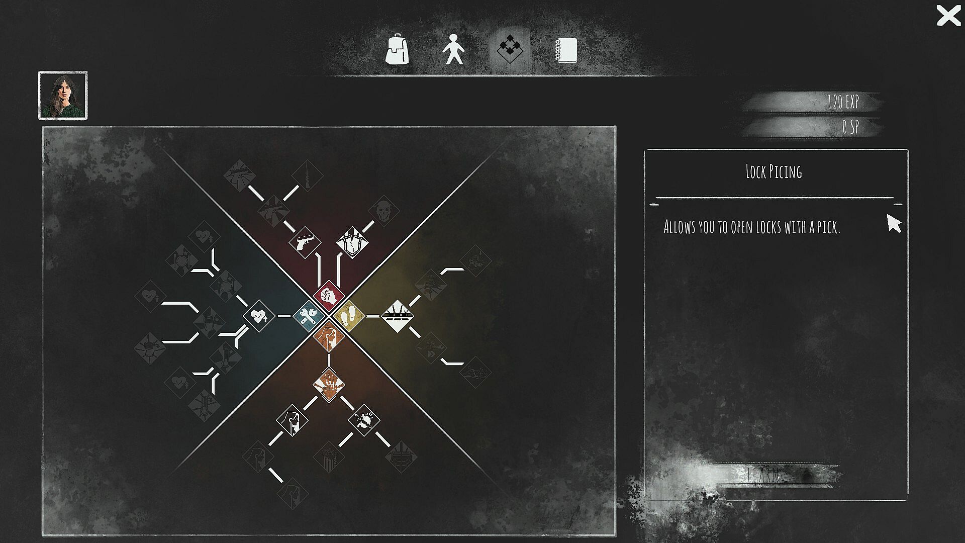 Look after food and fresh water and be prepared with limited equipment. Get plenty of sleep and watch the temperature. Cold and dark nights are not pleasant. Watch over your heroine's mental health. Avoid or confront danger with stealth and turn-based combat