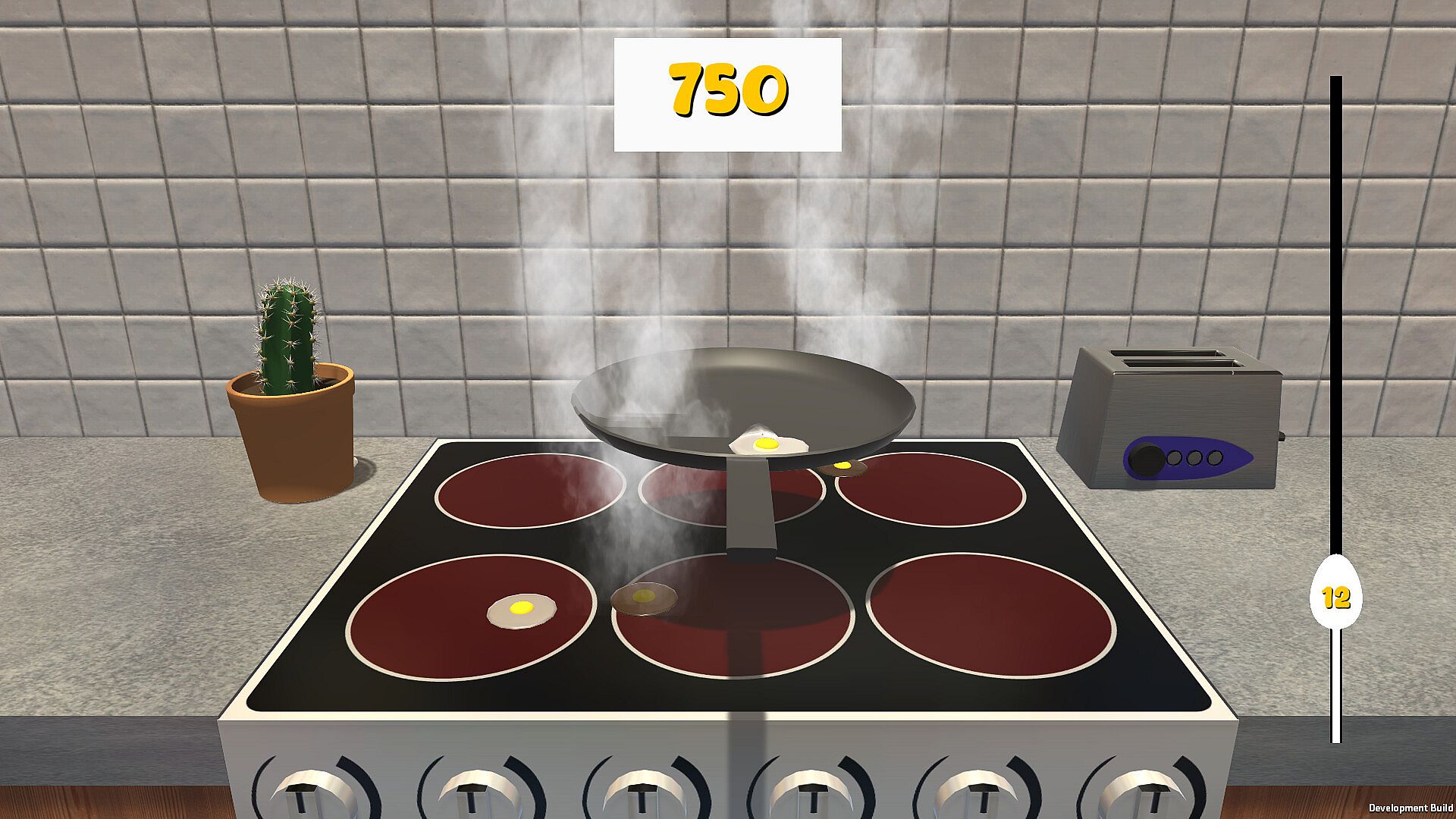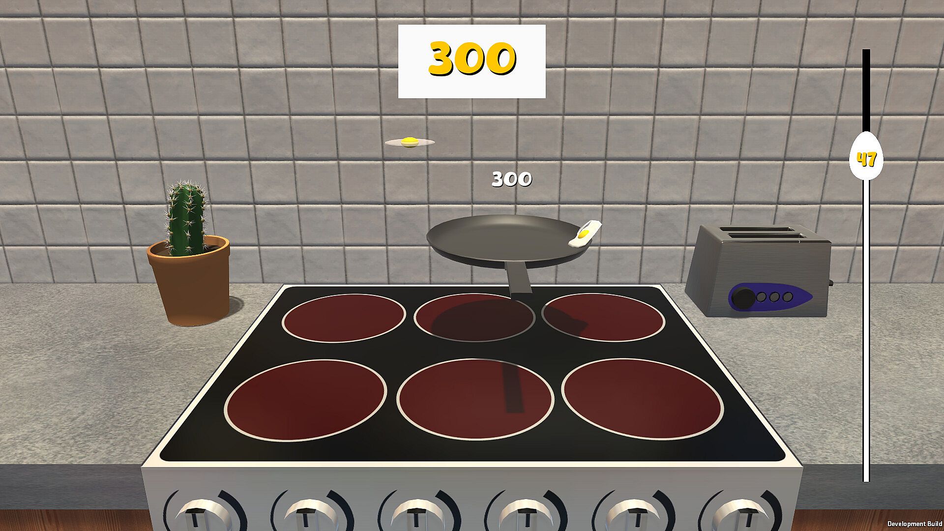 Catch eggs with your frying pan as they fall from above. Try to flip them as many times as you can to multiply your egg score, but be careful not to drop them as you will lose points.