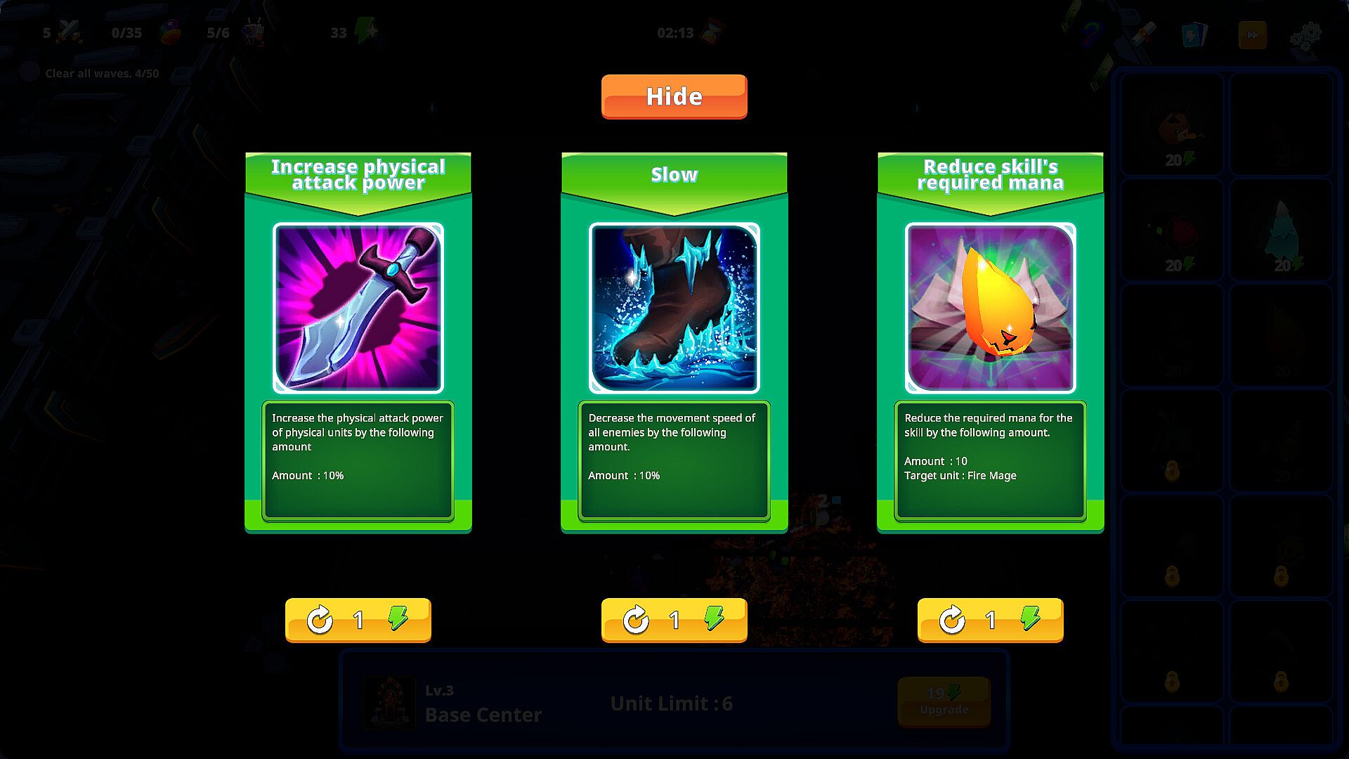 Players can deploy their units to block the eggs. Each unit has unique skills. Units gain mana by attacking, and when mana is charged, they can activate special skills.