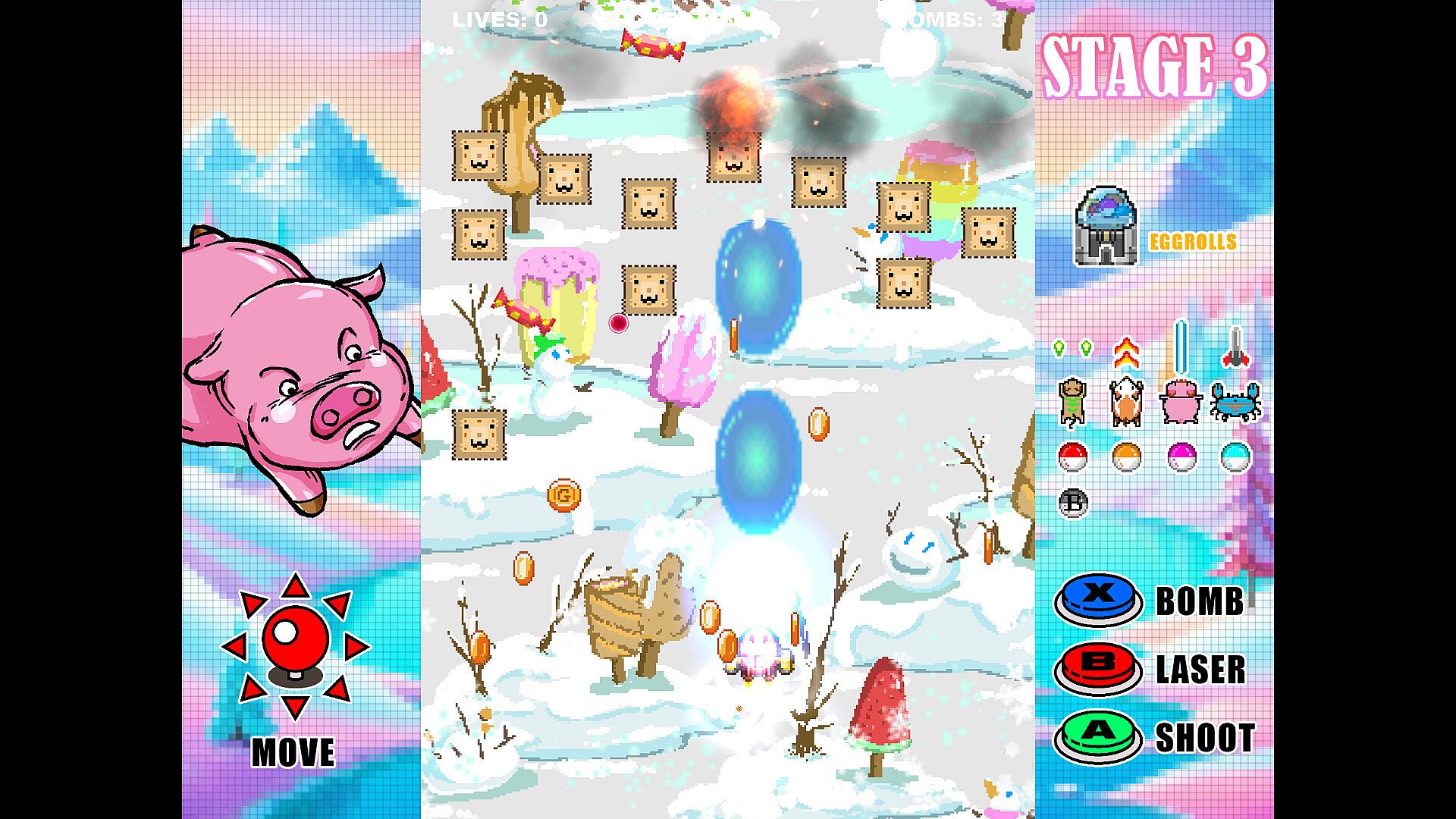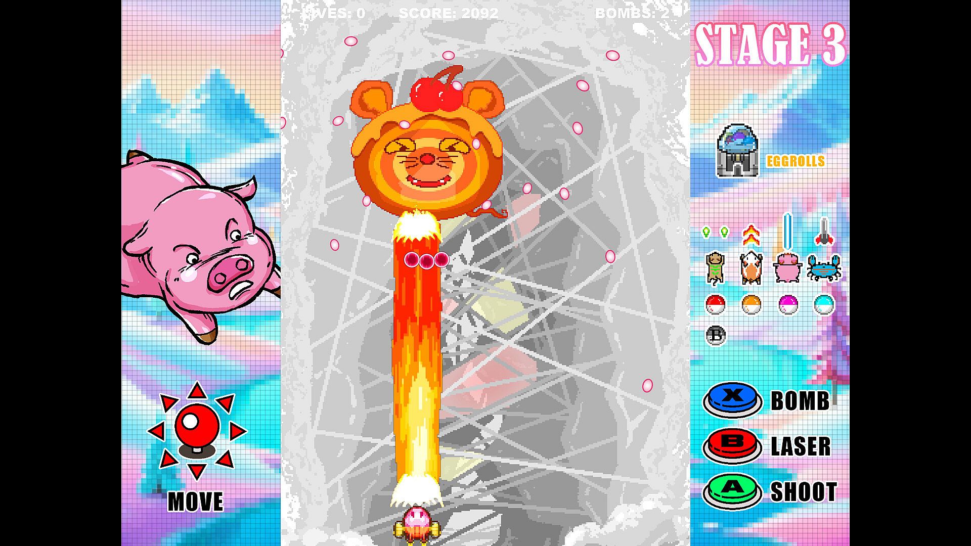 Eggrolls Shoot is a retro inspired arcade shoot ‘em up game. Our game is all about the adventure of saving the animal world. Our main characters are a brave girl and many animal friends, and we’re going to bring a little story for you in the game with them.