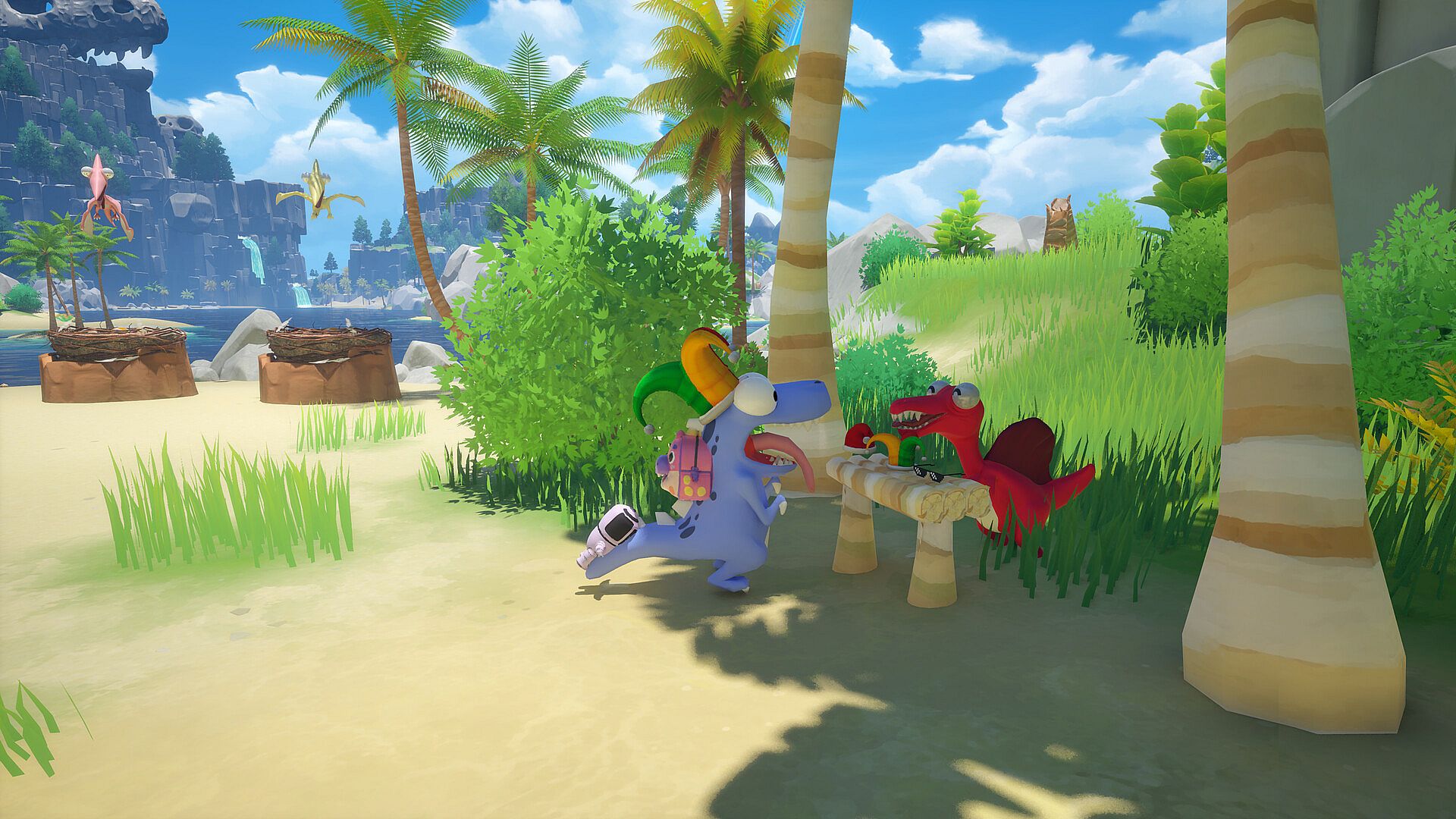 Welcome to a prehistoric world where survival isn’t about teeth and claws—it’s about teamwork, coordination, and keeping those precious eggs safe! You and up to three friends become a squad of goofy, lovable dinosaurs, each with unique abilities and personalities. Your mission? Gather scattered eggs and return them to nests scattered about the environment before time, terrain, and the planet itself turn against you.
