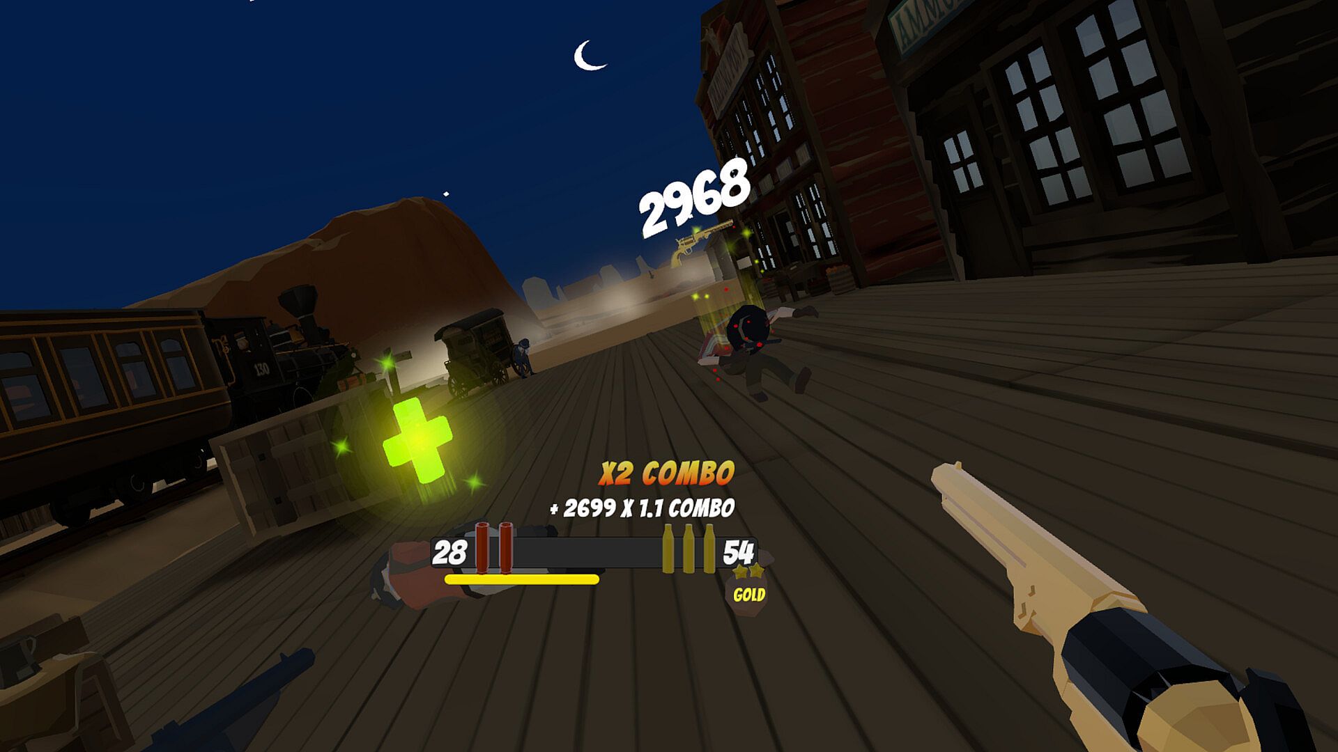 Mechanics: each encounter is scored based on your gun-swinging speed, accuracy and timing: perfect headshots, consecutive combos, quick reloads, and dodging enemy fire all contribute to a higher score in your rhythm-perfect performance. Look out for collectables, interactable objects and explosives! Features include haptic feedback, optional aim assistance, gesture controlled or automatic reloading. Supports standing and seated experiences.