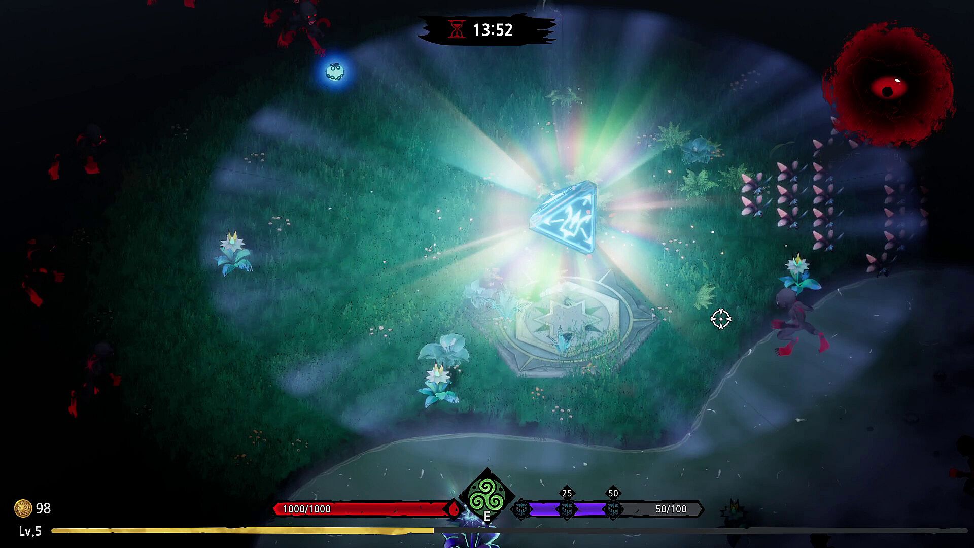 Mysterious flowers bloom bravely amidst the horrifying horde of monsters.