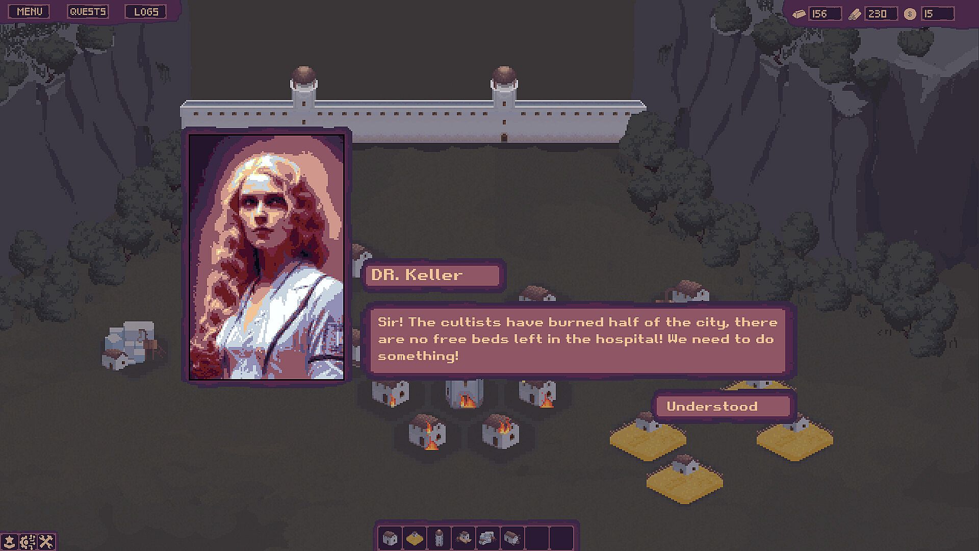 Eldritch Town is a roguelite game. Every run has multiple objectives you have to complete to win, but if you can't finish those quests and your city gets destroyed, you don't lose everything. You keep resources and your reputation with different characters. If you've met new characters during the run, you'll be able to start with those new characters in your team in the next run.