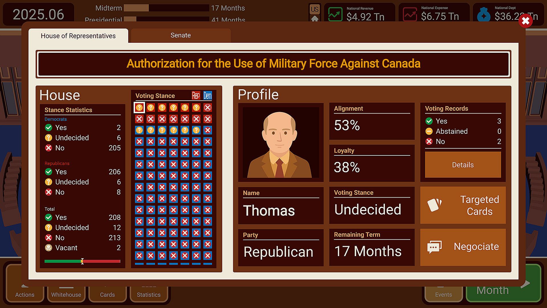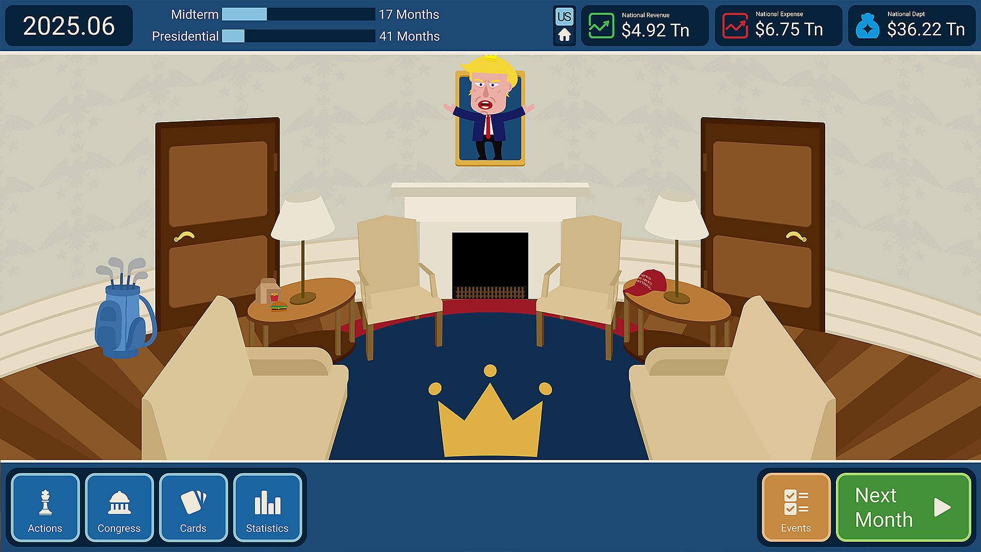 You've just been elected President of the United States -- at a moment when trust is thin, institutions are strained, and every promise comes with a price. In Electoral Empire, you don't just "pick good options." You build coalitions, trade favors, manage crises, and decide how far you're willing to go to stay in power.