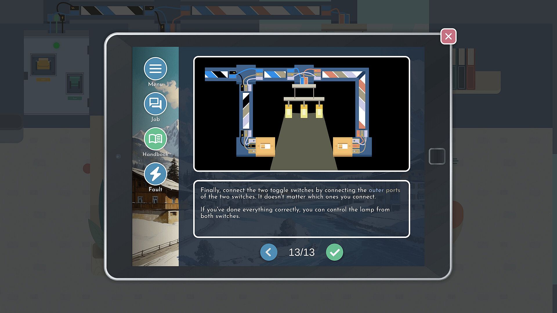 You take on the role of an electrician, returning to the remote village of St. Ampere, nestled in the breathtaking Austrian Alps. Tasked with wiring up homes and structures, you’ll master the principles of electrical engineering. Install cables, switches, and other electrical devices, strategically wiring them up to create functional circuits. Each building is a puzzle, requiring your skills to power it up. Your journey will ultimately transform the village, awakening it from its unpowered slumber. One circuit at a time.