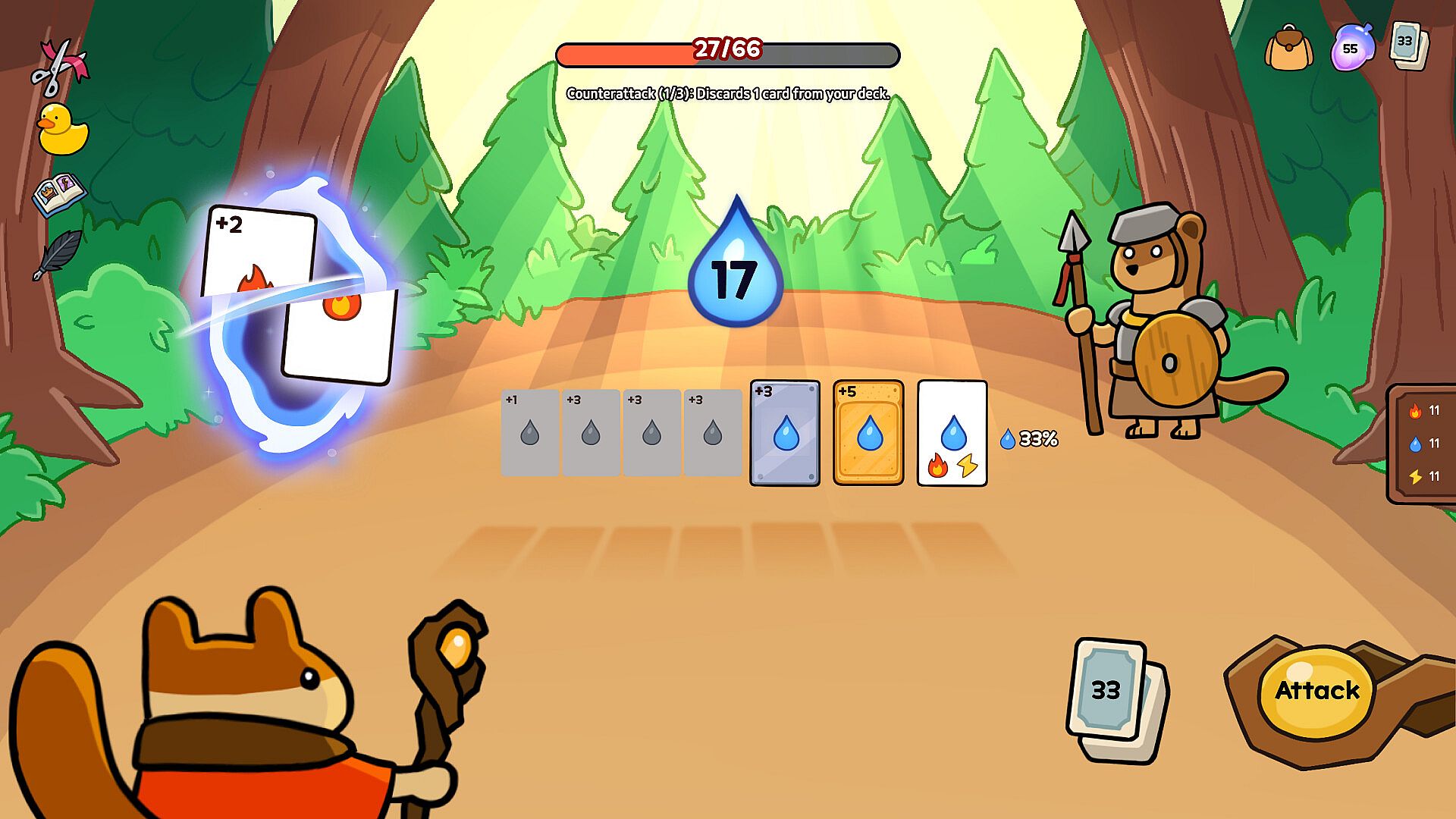 Set off on a magical journey with adorable animal wizards, harnessing the power of Water, Fire, and Lightning elemental cards!