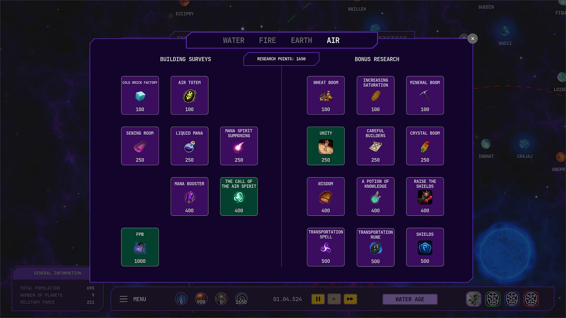 Manage a team of wizards who land in a fresh world and claim your first planet. Construct buildings and direct people into industries to grow your operations. Seize control of nearby planets to broaden your reach across more than 100 randomly generated worlds. This indie strategy game offers over 40 building types on compact 15x11 cell fields per planet. Pursue 80 research options split across four elements, handle more than 30 resources including people, and deploy six spirit-based military units. Players who enjoy measured expansion and resource-driven conquests will find a focused challenge here.