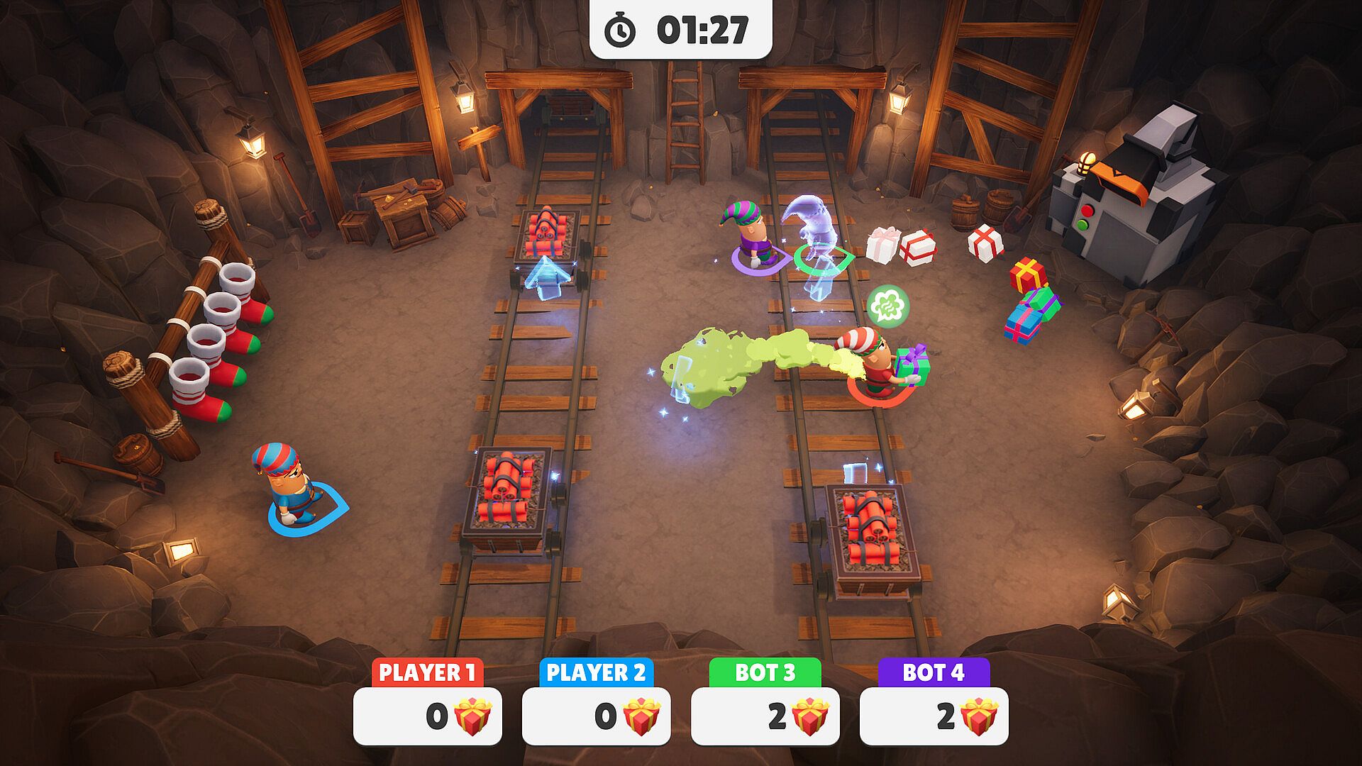Compete with friends or team up to deliver the most gifts