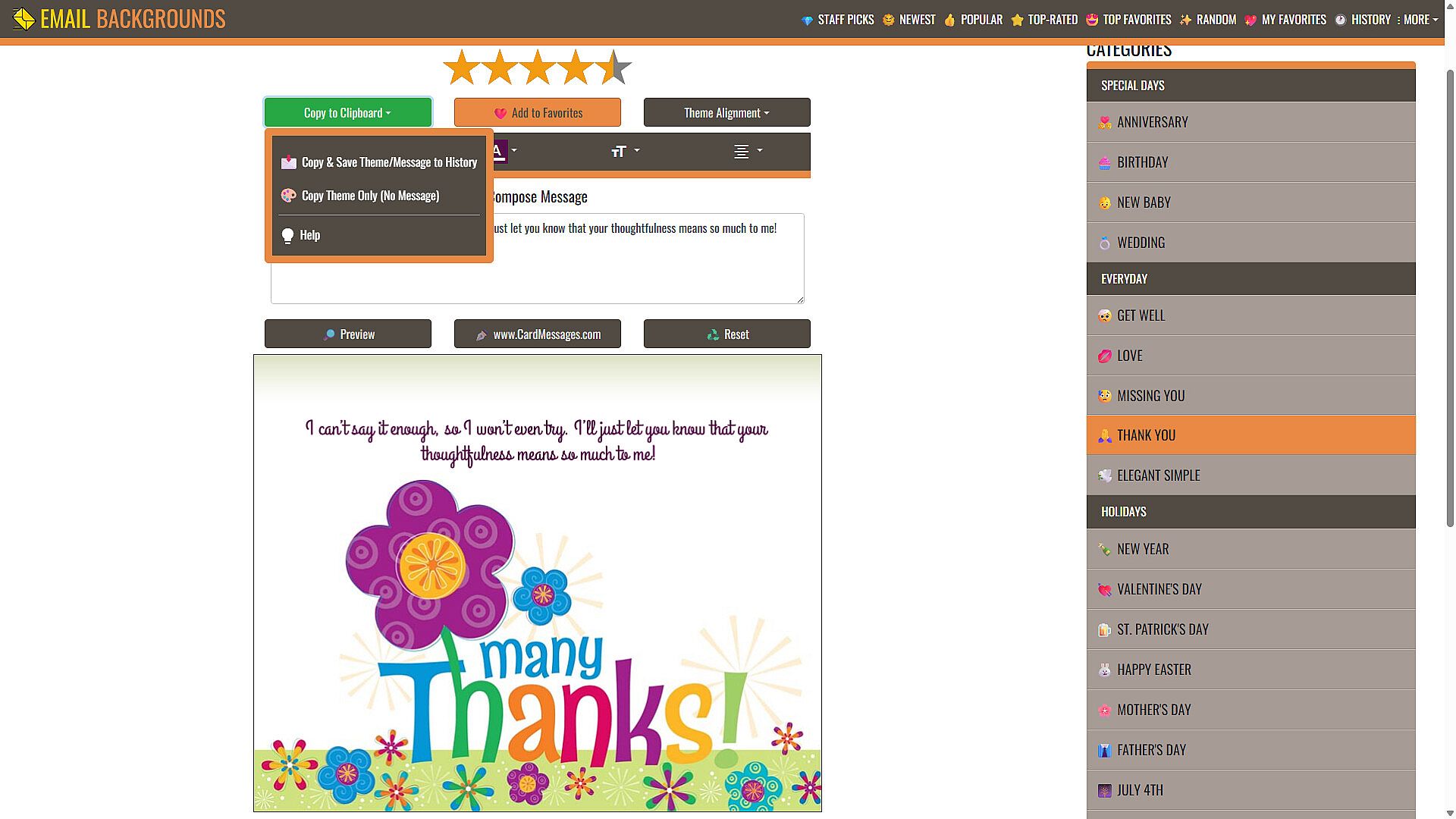 • Simply copy your selected background to the clipboard and paste it into your email client.