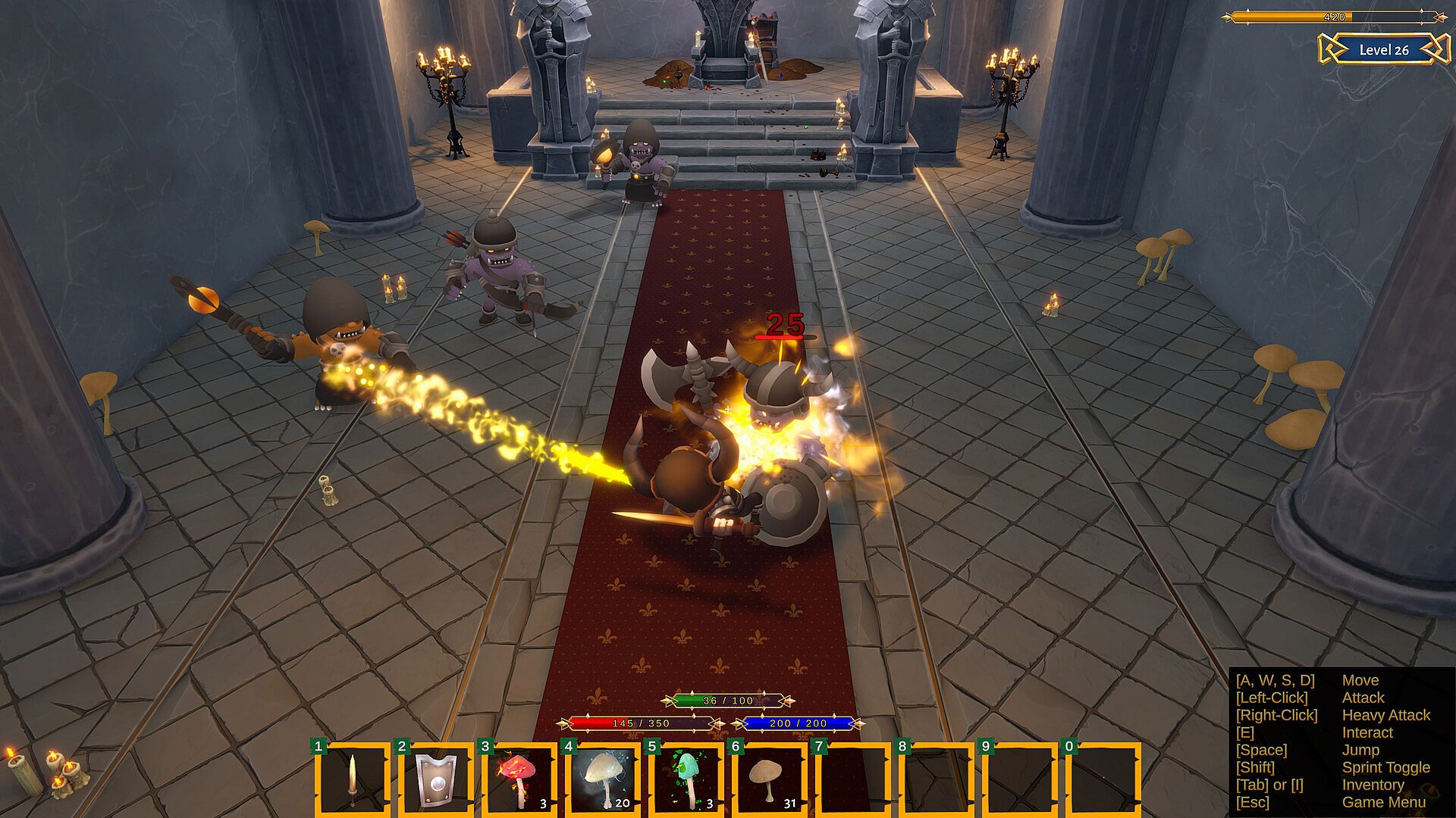Collect magical, elemental mushrooms; fire, air, water, and nature. Infuse their magic into your armor and weapons and gain damage buffs, health, speed, mana, and stamina buffs. Consume mushrooms and gain temporary increases in speed, damage, mana, and stamina.